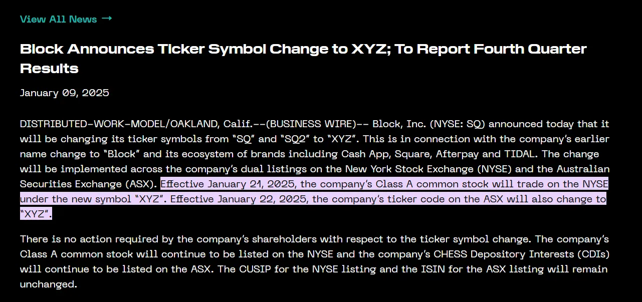 最近Block把自己的股票代码从SQ改成了XYZ。公司改股票代码虽然不常见,但是也不是非常罕见的情况。比如之前Facebook就把自己的股票代码从FB改成了META。我观察Block其实也有一段时间了。之前之所以我会关注Block,主要是因为它旗下的2个核心产品,在澳洲很流行。Square支付处理,和Cash App在澳洲很受欢迎。我们事务所很多客户也都开始使用Square来取代传统的收款方式。