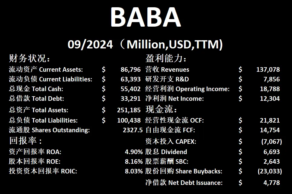 又到了每90天一次的阿里财报复盘时间。阿里应该是我研究最多,认知最深的公司了。首先,我开过10年的淘宝店,在阿里的电商生态圈混迹多年,我懂得阿里在电商领域的护城河。其次,自从开始对阿里的股票感兴趣,我已经跟踪阿里的财报6年多了,从阿里股价150左右,目送它20年的时候涨到每股$319.32美元。又一路看着它“陨落”,一度跌到$58.01美元一股。我申明下,我持有非常大的阿里仓位。注意我说非常大的仓位,不是说我投了多少多少钱,而是说阿里占我的总仓位很大。我就是在阿里“陨落”的过程中建仓的。