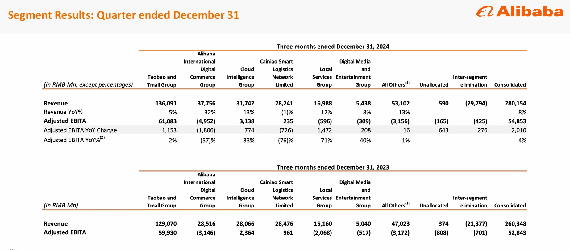 -阿里云增长13%。并且有2.4B RMB的 EBITA。