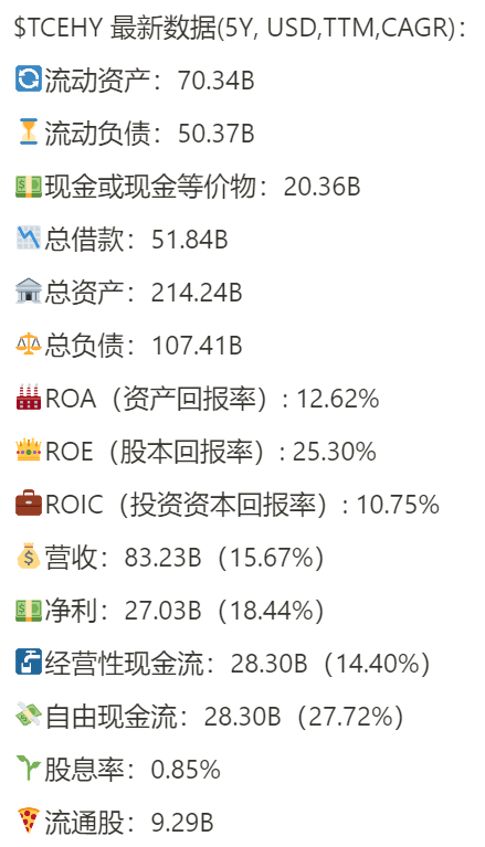腾讯最新面板:财务健康,回报率稳定增长,股本回报率有25.3%,盈利能力稳定增长,同时股息也很稳定