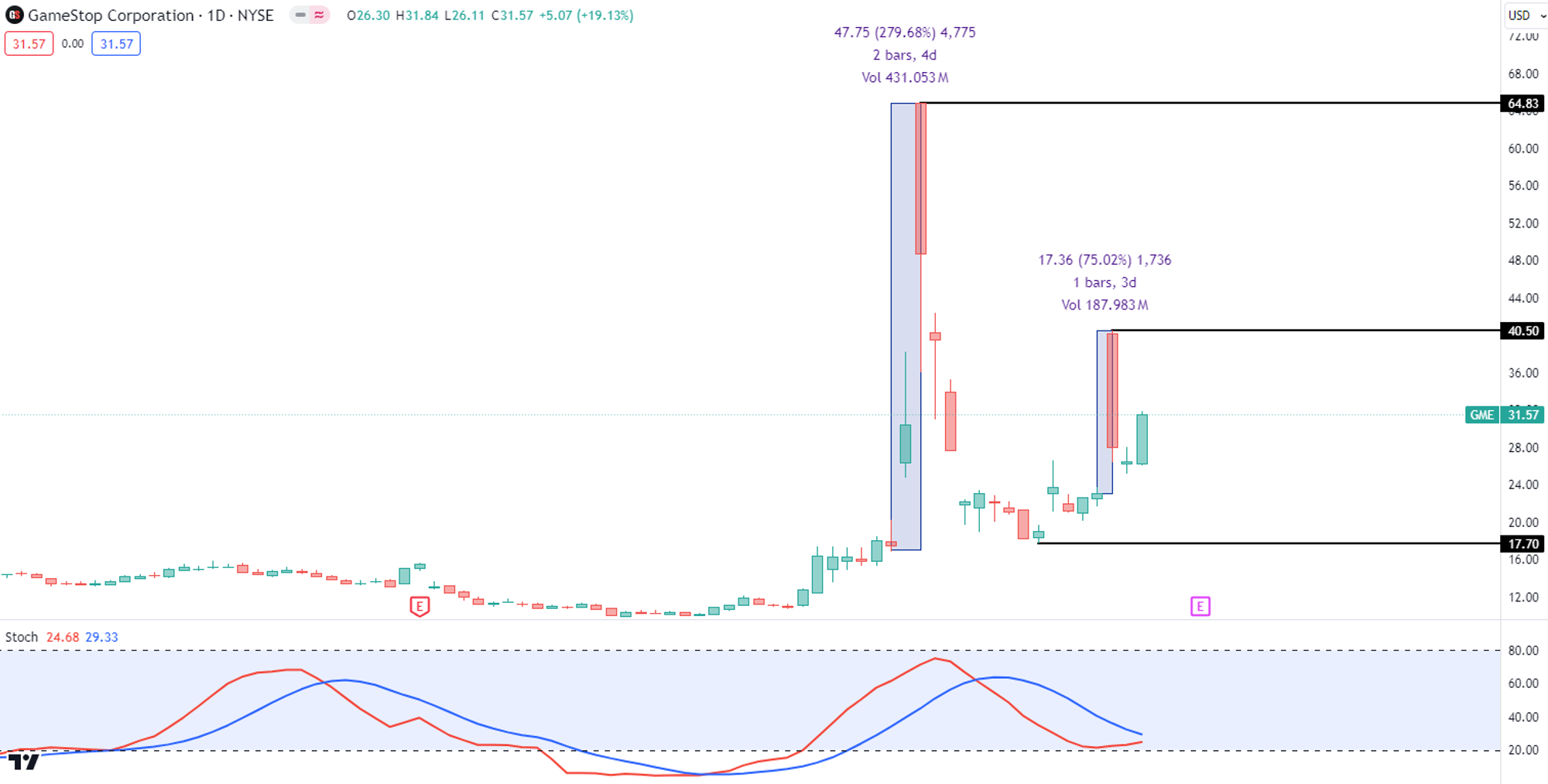 $GME 在Roaring Kitty公布了他的 $180M仓位之后,1天涨了75.02%