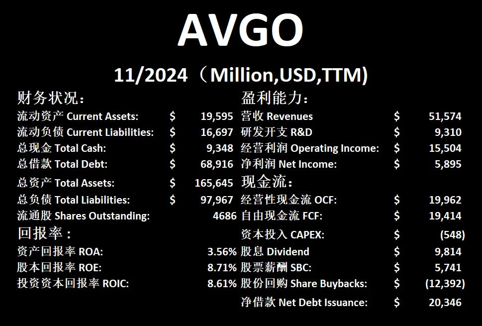 -财务还算不错,虽然69B借款实在是有点吓人,但是Broadcom12个月有19.42B FCF,所以总的来说似乎还算行。