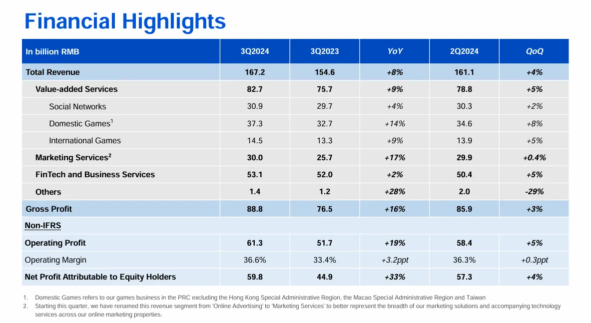 再来,就得谈到腾讯的广告业务。目前虽然只占总营收20%,但是这个部门增长是最快的,同比增长有17%。这块业务是我持续看好的一块业务。腾讯在游戏和社交平台上都有着得天独厚的优势,它的客户是中国每一个人,如果它能够借鉴META和Google的系统,开发更精准的广告投放,这块业务只会越来越多。