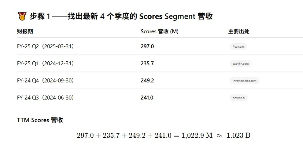 首先,25财年Fico Score大概TTM营收是1B。