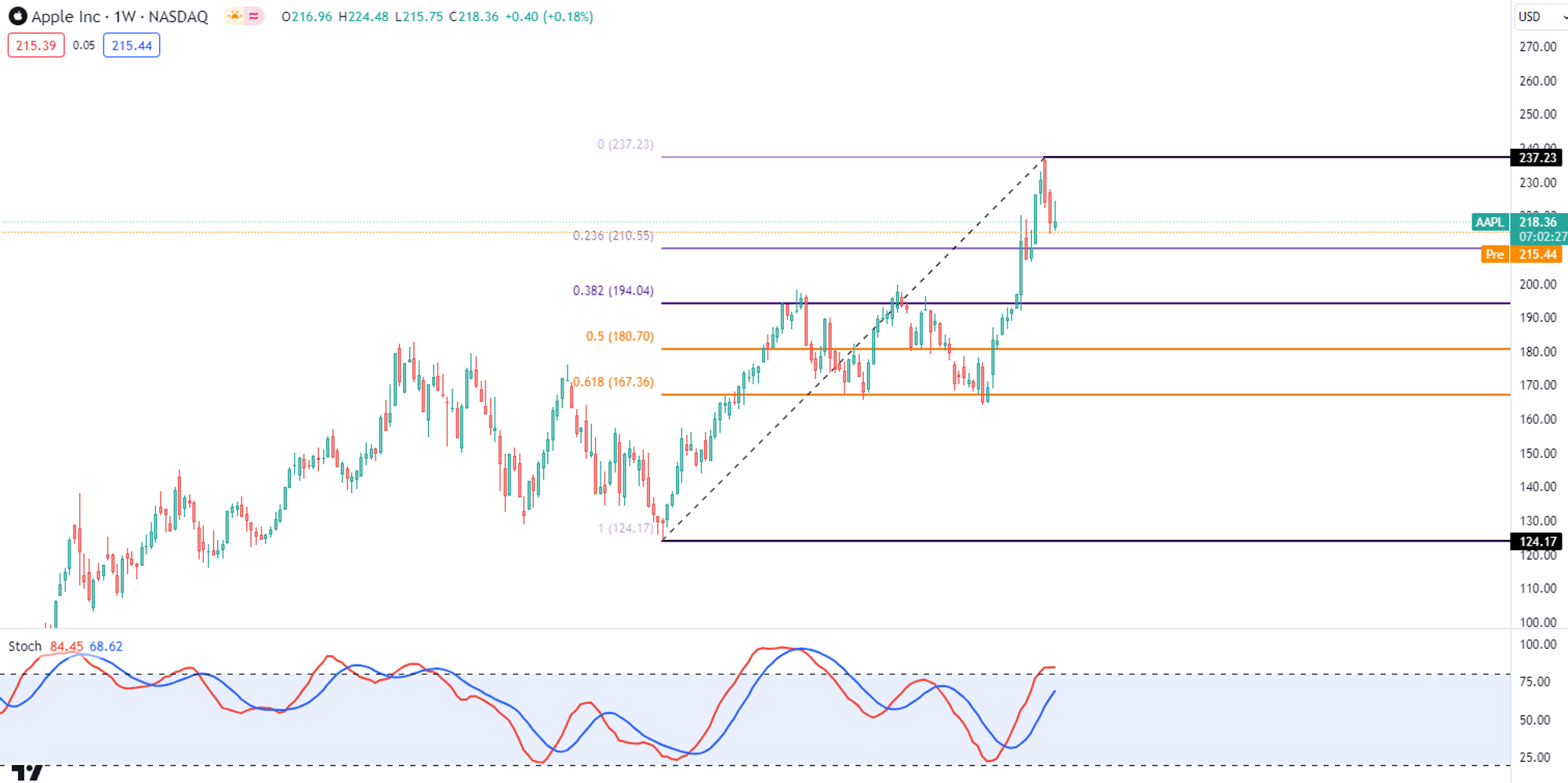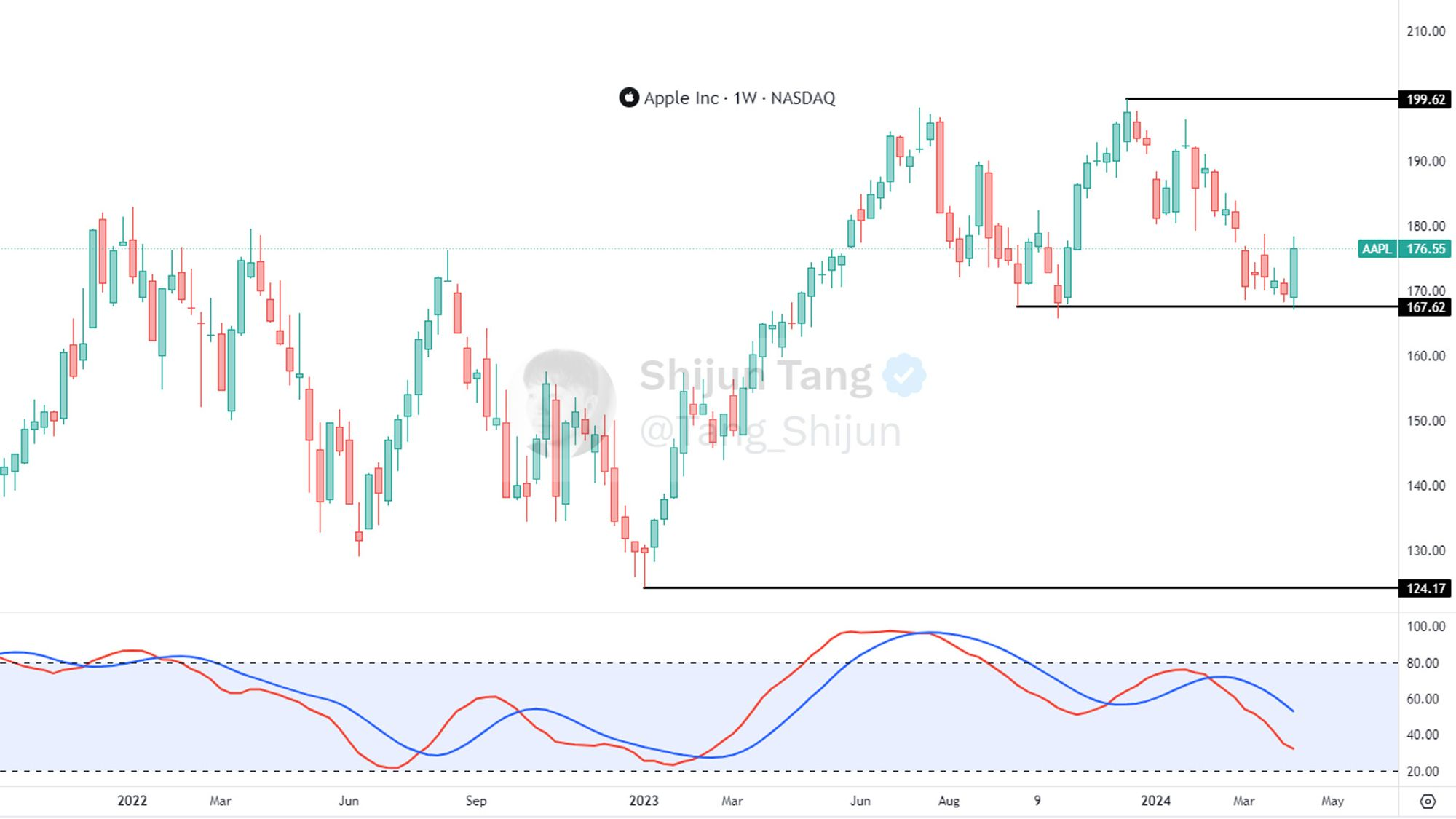 -苹果在176价位,也就是Fibonacci 0.618价位,可以说是有很强大的支撑。