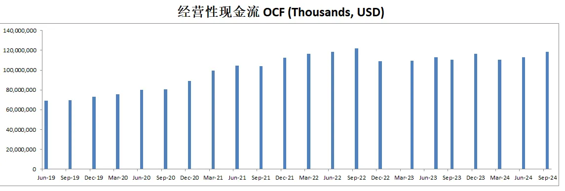 -OCF和FCF体量几乎是一样的,因为CAPEX投入不高