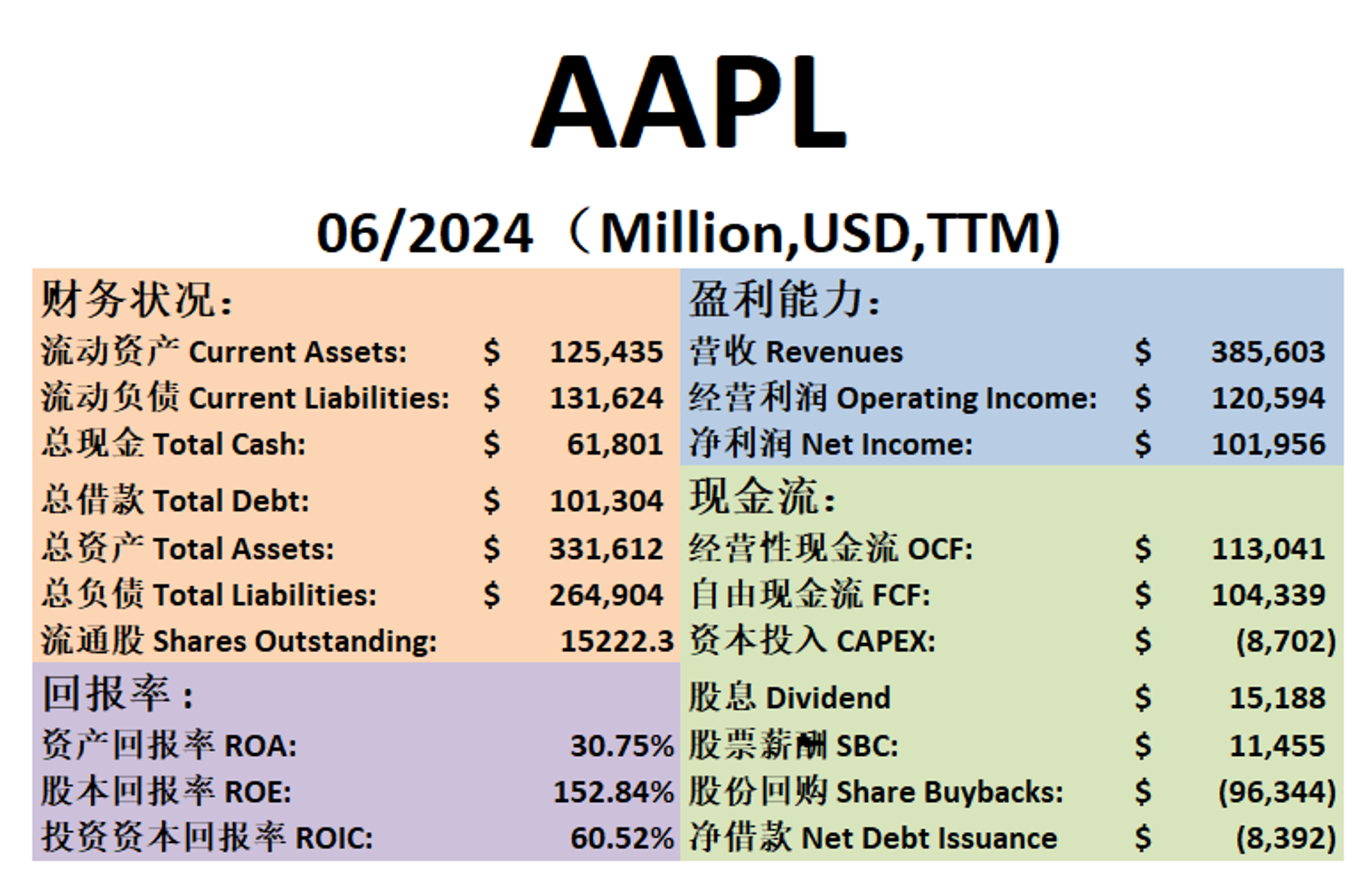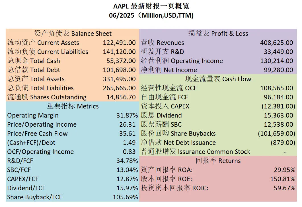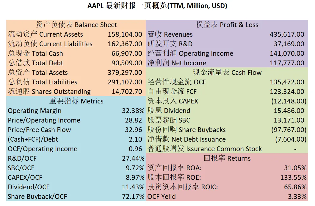 $AAPL 最新财报一页概览