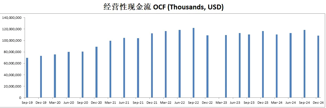 -苹果在运营和战略方面取得了重要进展:公司持续在人工智能和Apple Intelligence领域进行大量研发投资;现金储备达1570亿美元,净现金为500亿美元;此外,通过派发股息和股票回购,向股东返还了290亿美元,体现了对股东价值的持续承诺。
