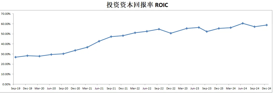-ROIC仍然有59.19%,即便如此夸张,仍然在稳定增长。