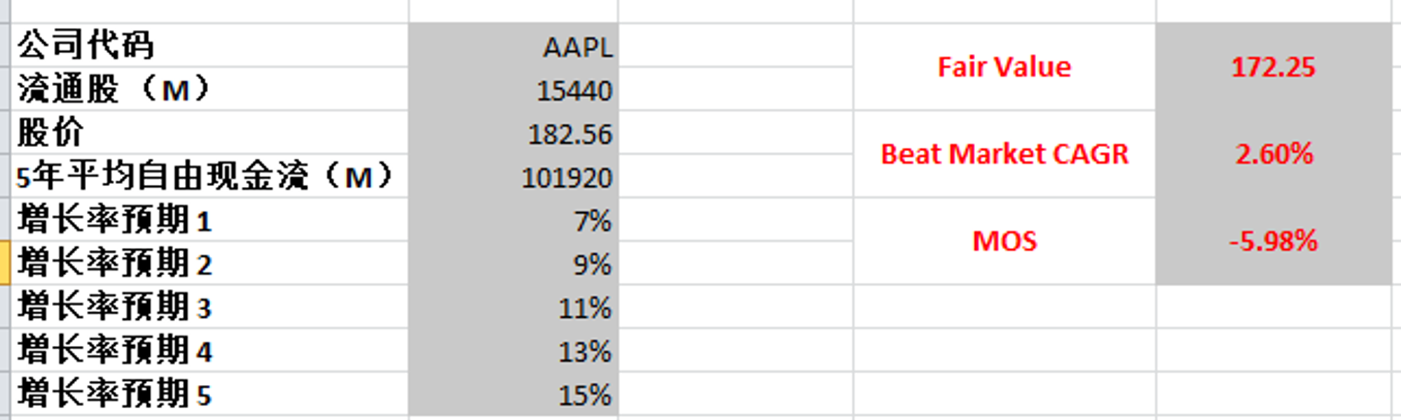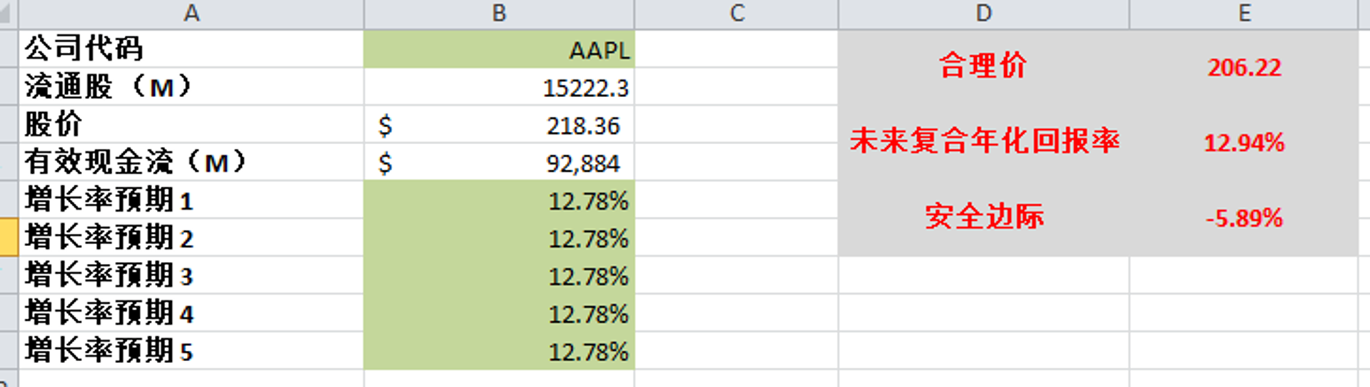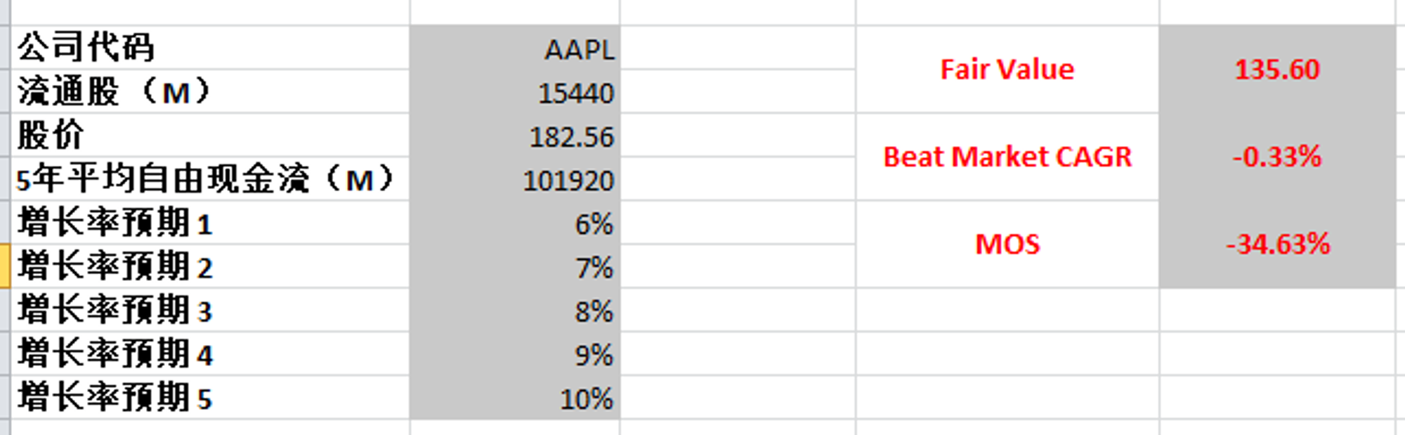 -根据我的估值,目前股价不存在安全边际