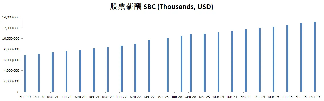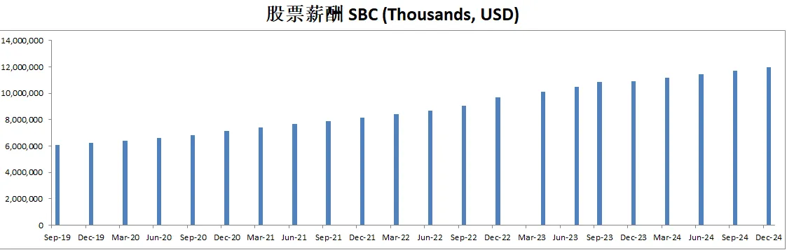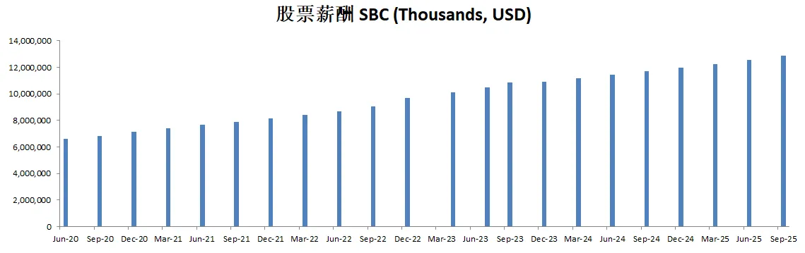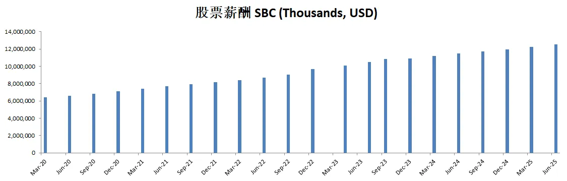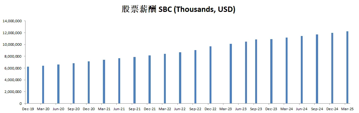 值得注意的是,股票薪酬虽然有10.93B,但是也就自由现金流的10%而已