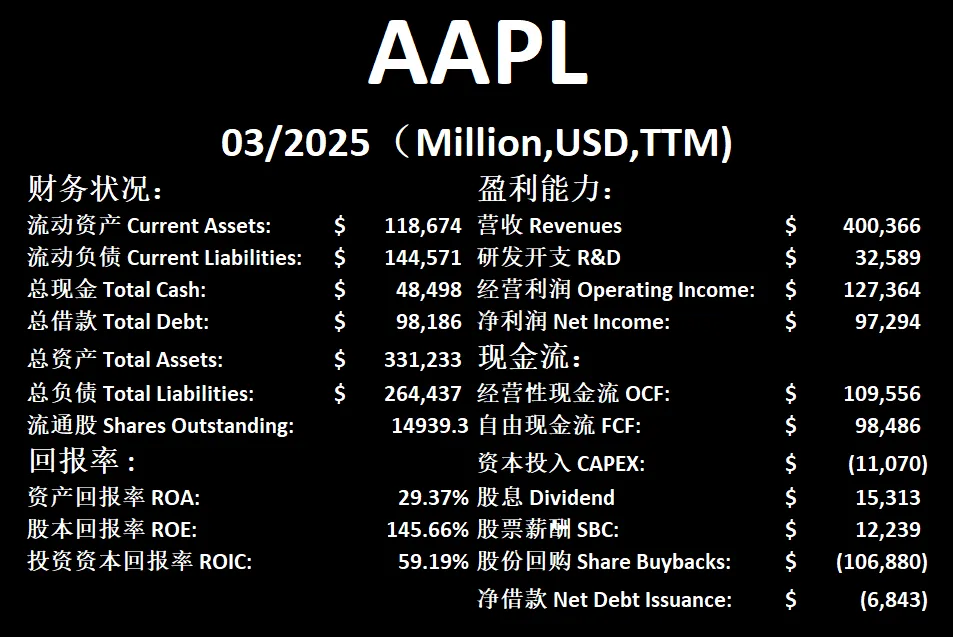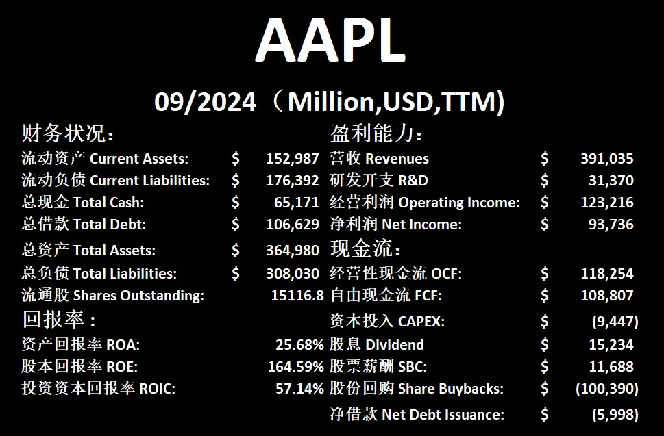 $APPL 最新财报一页概览