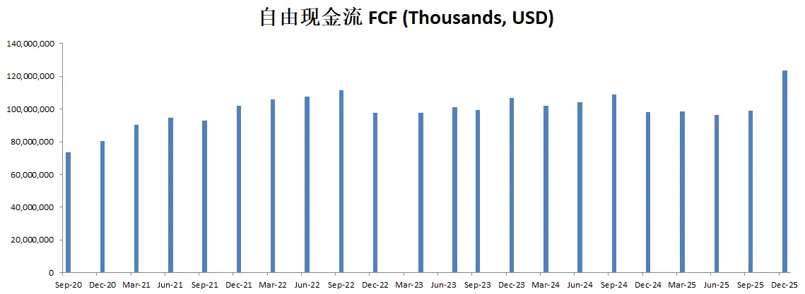 -财务健康,很少有人提到,苹果一年的FCF有差不多100B。它一年的自由现金流就能还清全部借款。