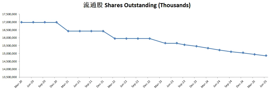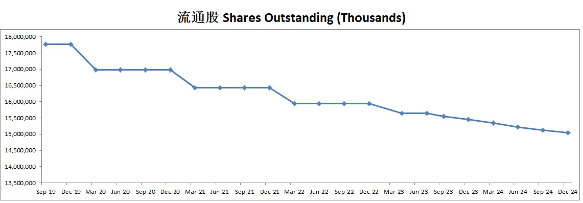 -由于大力的股份回购,肉眼可见流通股越来越少