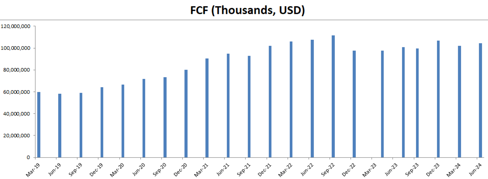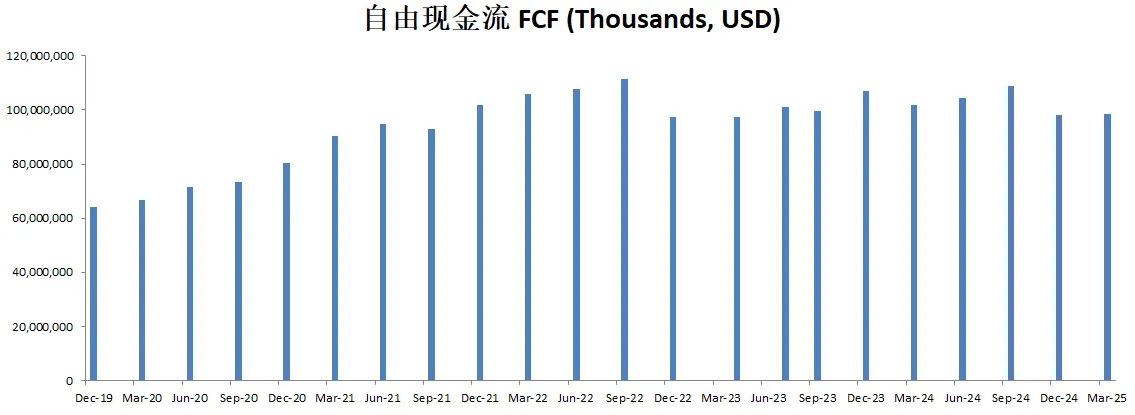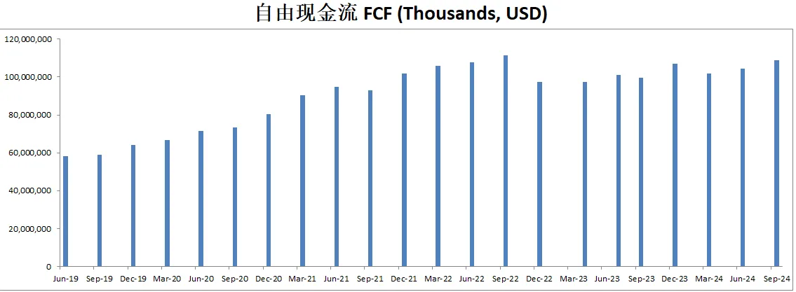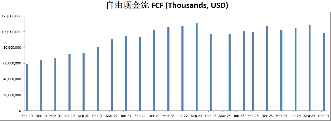 最新FCF101.92B,5年CAGR是9.57%