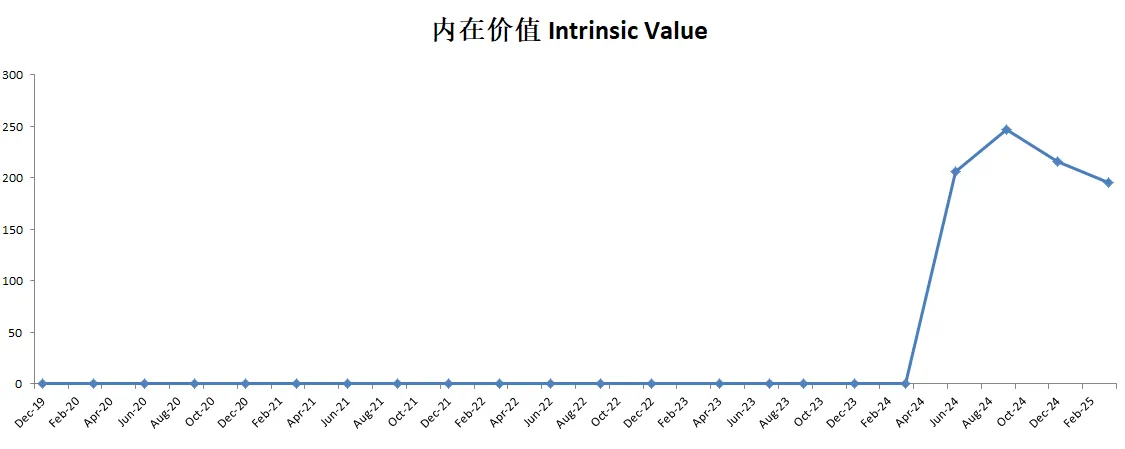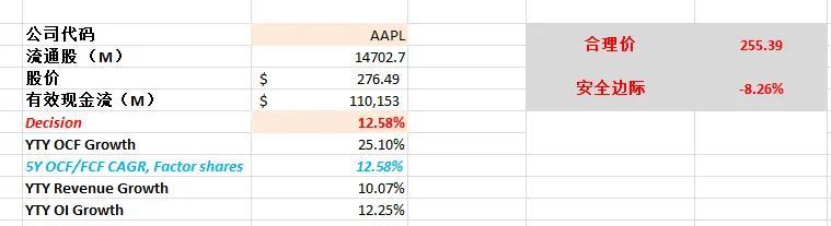 -如果按照目前的有效现金流86.25B,CAGR用13.11%(5年CAGR为13.11%),合理价算出来为195.84。