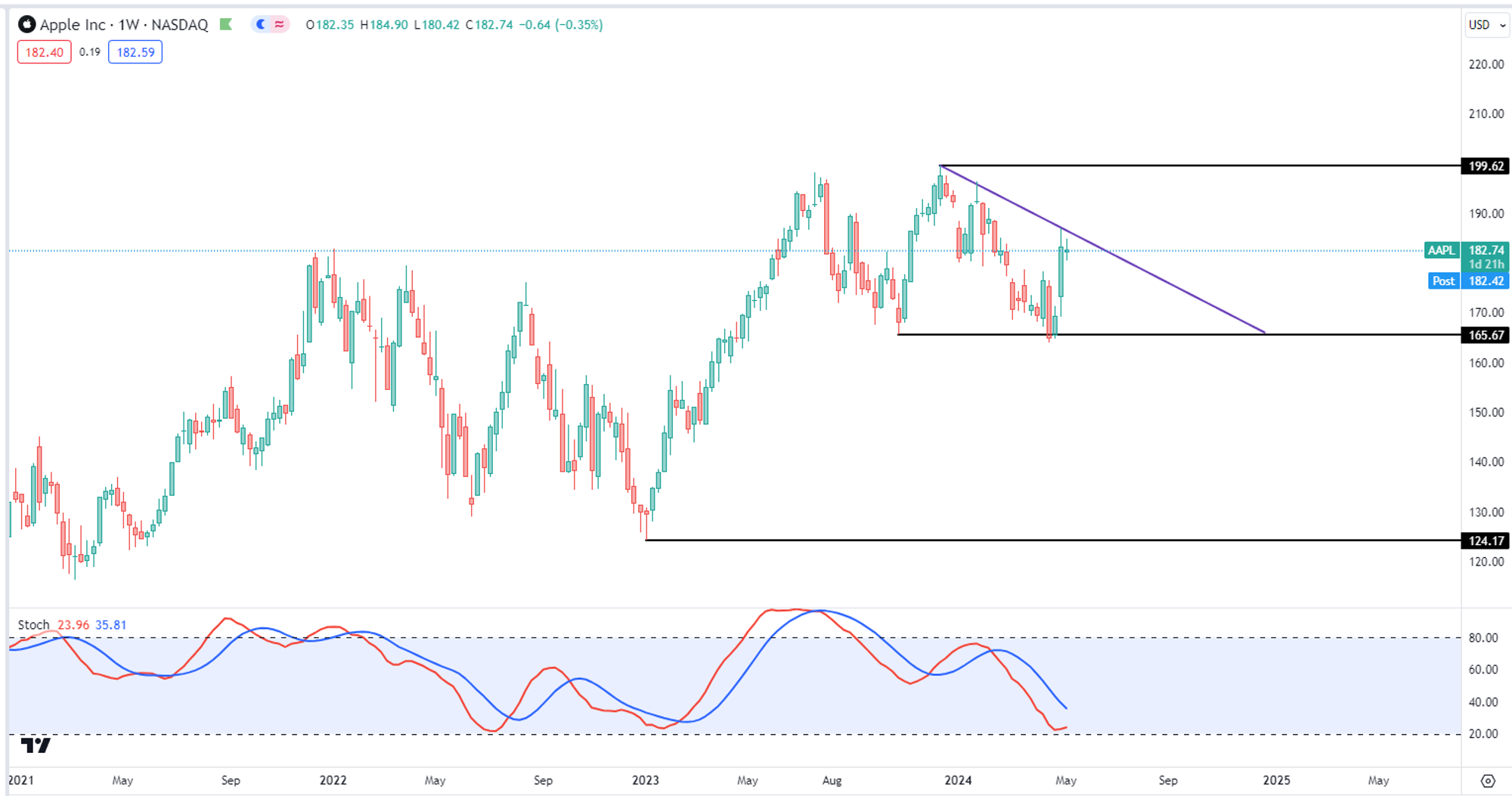 苹果( $AAPL )刷新历史新高后119天,一度跌了16.29%,这周一度跌到167.11价位