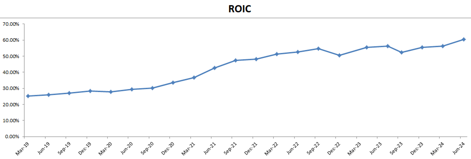 -ROIC有60.52%,表现同样一如既往的惊人