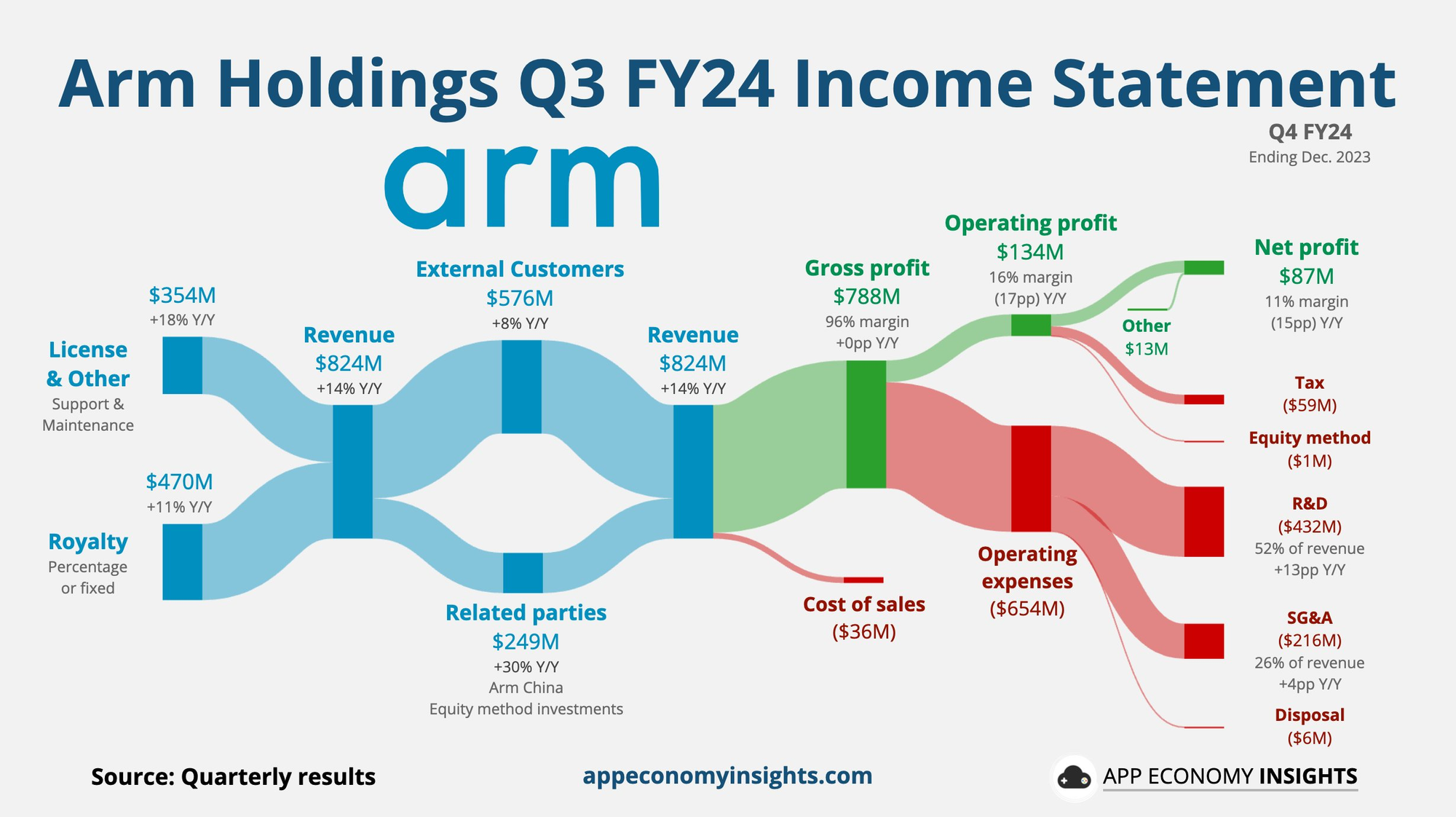 这张图是截至23年12月,上个季度,ARM的业务模型