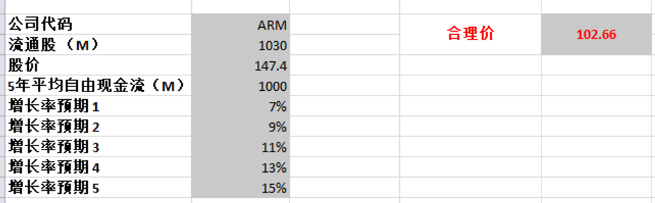 公司现在并没有正向现金流,即便我给了1B的自由现金流,合理价也才102.66而已,现在股价严重高估