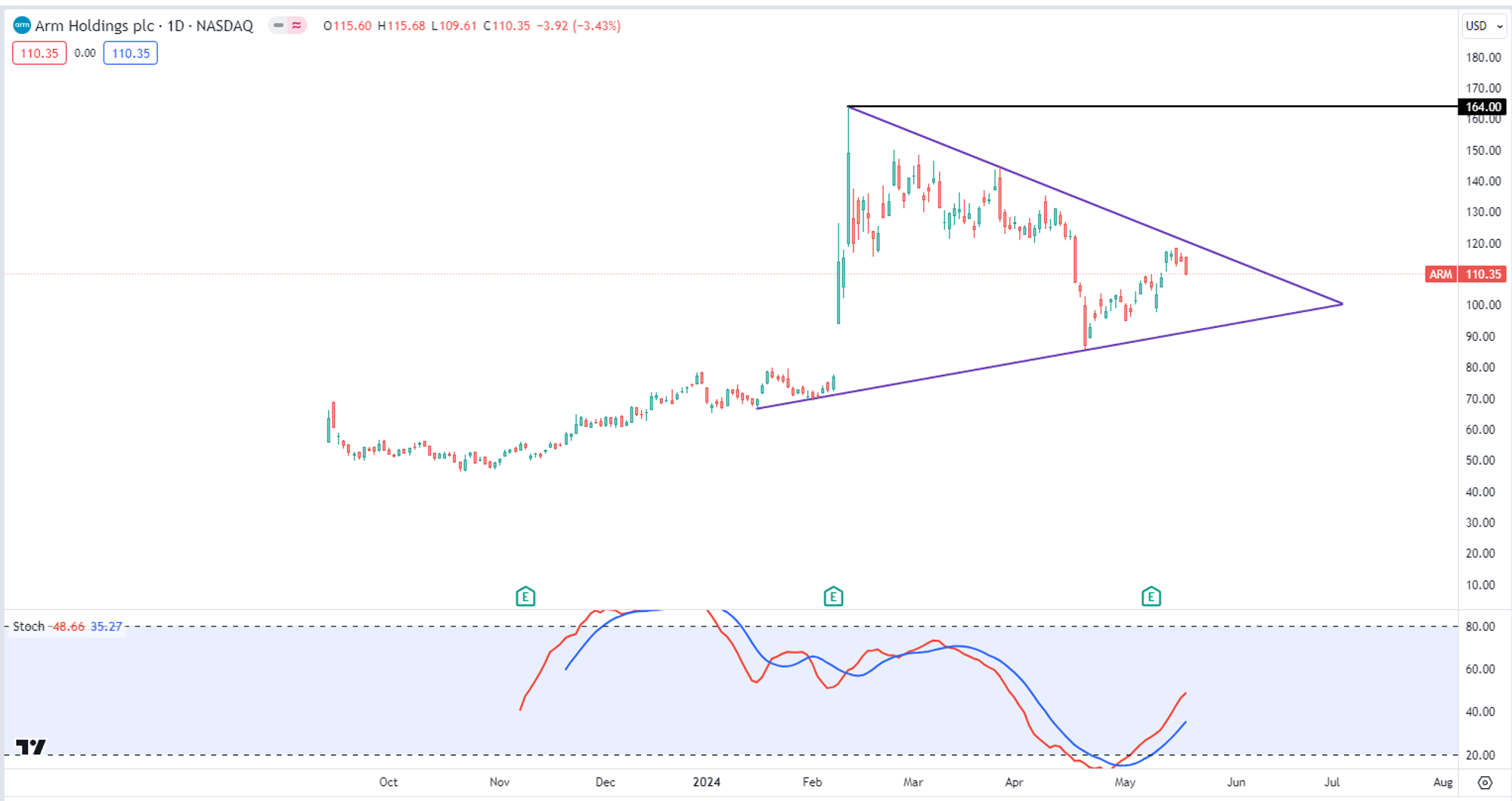 Arm Holdings( $ARM )自从115天,涨了252.69%,翻了3.5倍之后