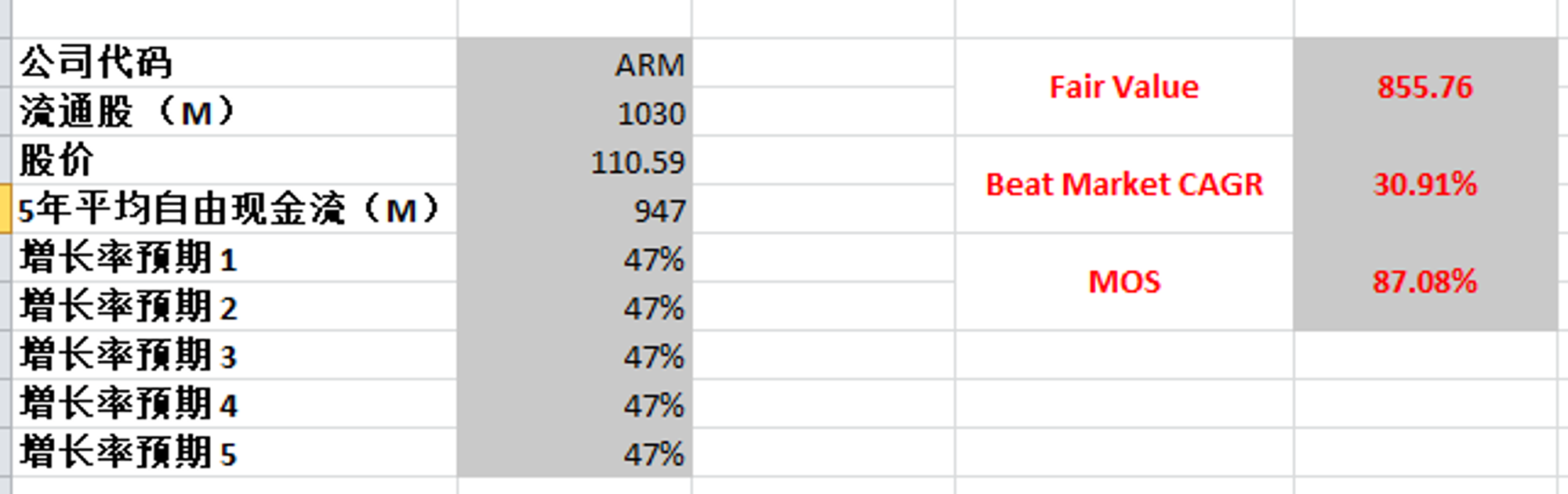 最新FCF为947M,上市1年多CAGR是46.59%,如果按照这个数据算10年,合理价是夸张的855.76,显然这是不可能实现的