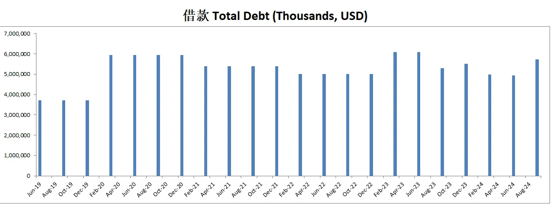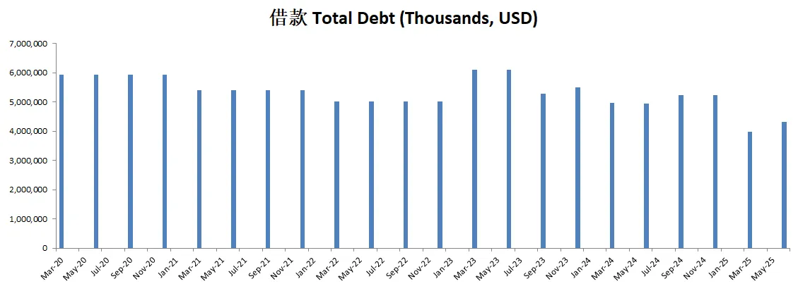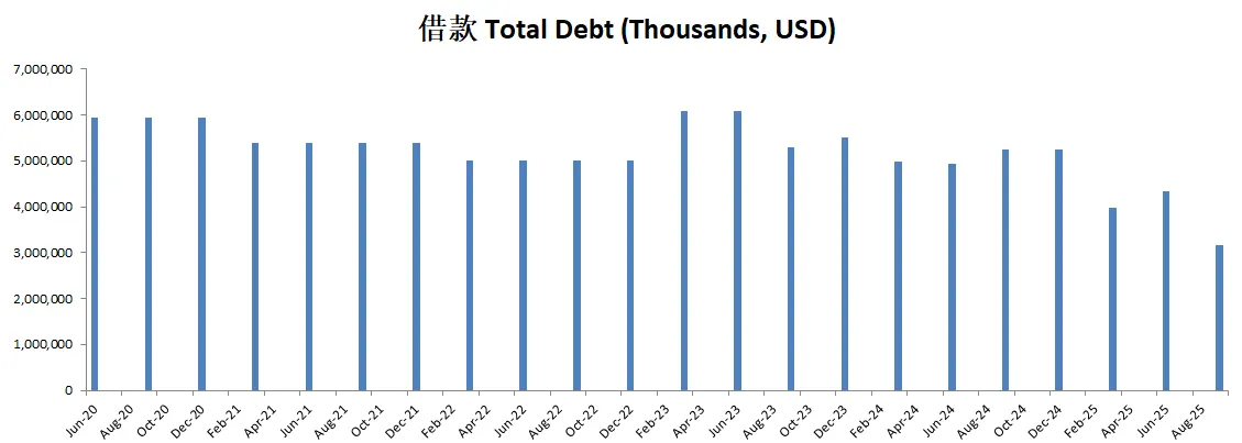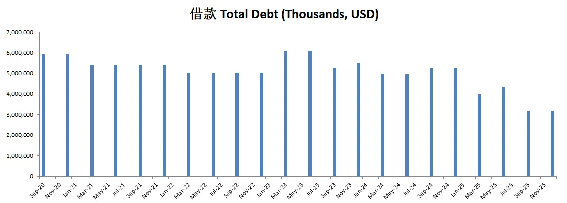 -财务健康借款已经只剩下3.8B了,现金是借款的4.5倍