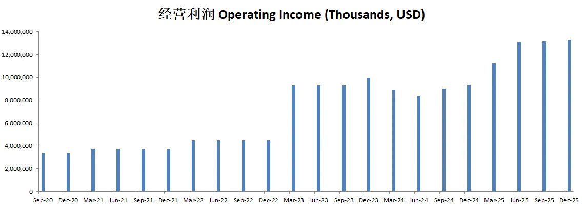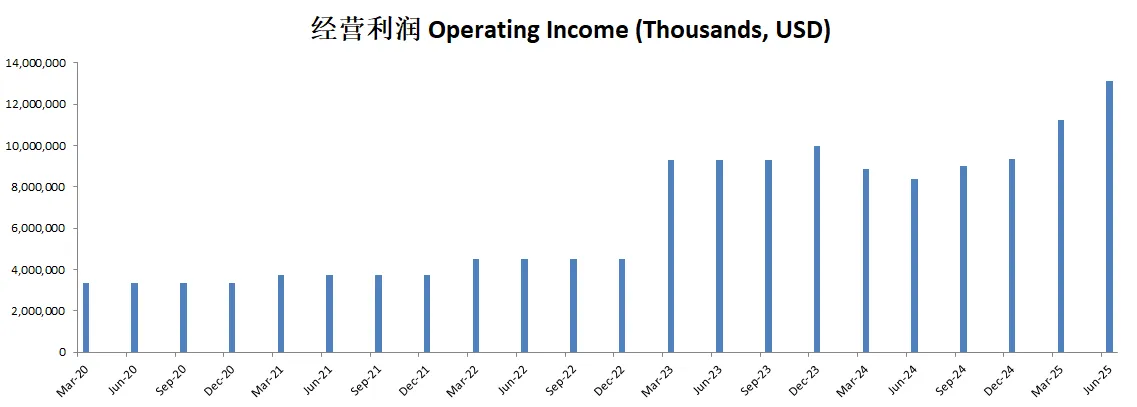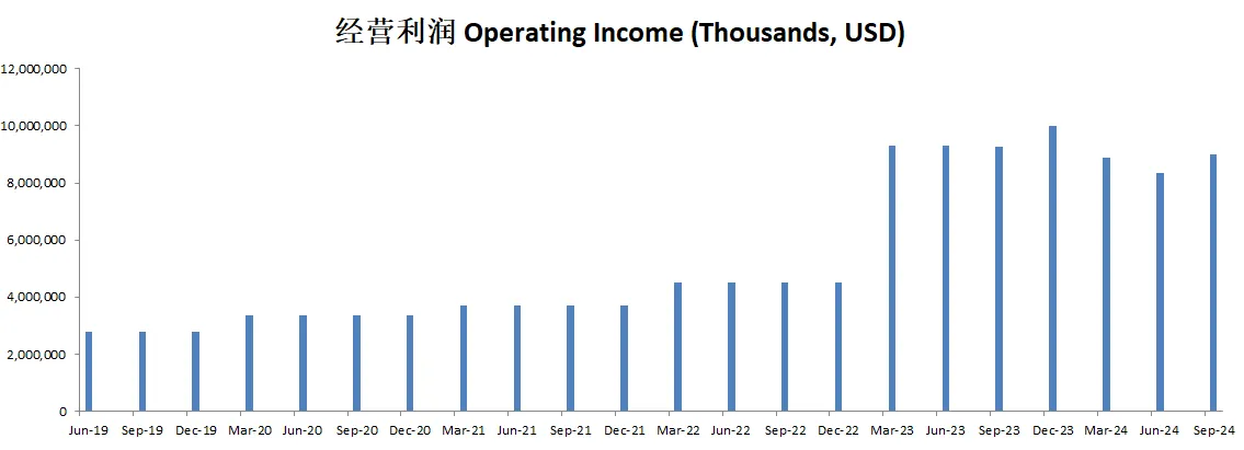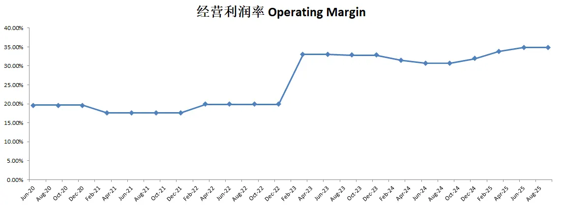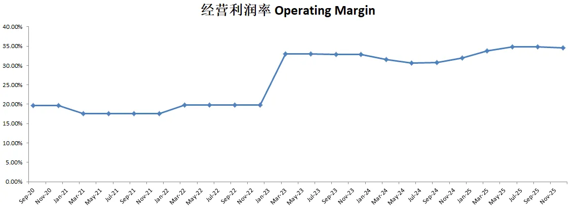 盈利能力出色,利润率惊人,经营利润率有34.5%