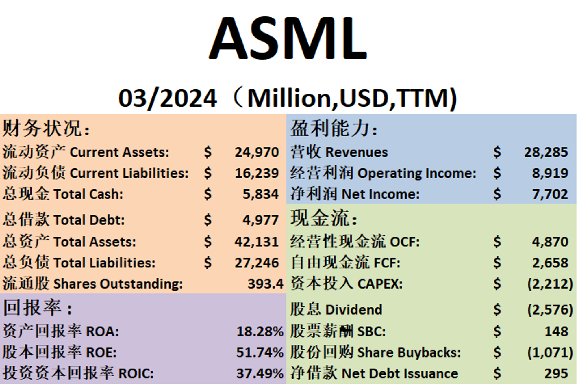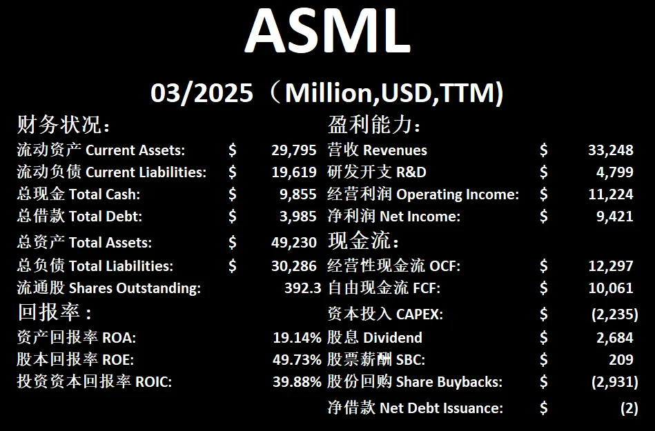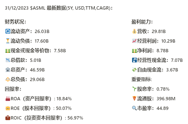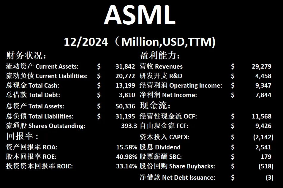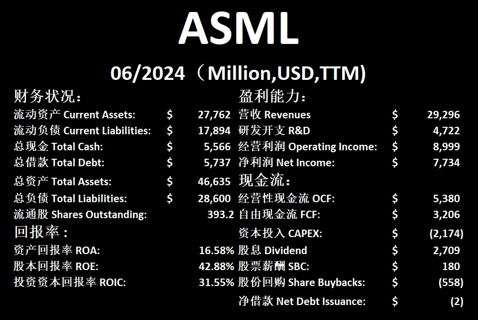 $ASML 基本面来看,资产负债表强劲,现金充足