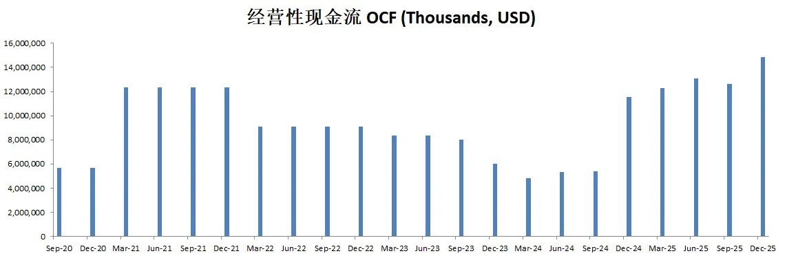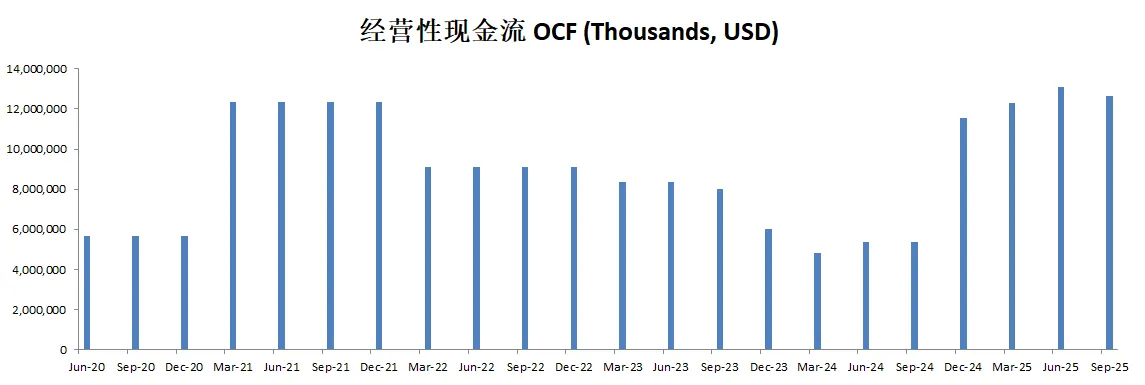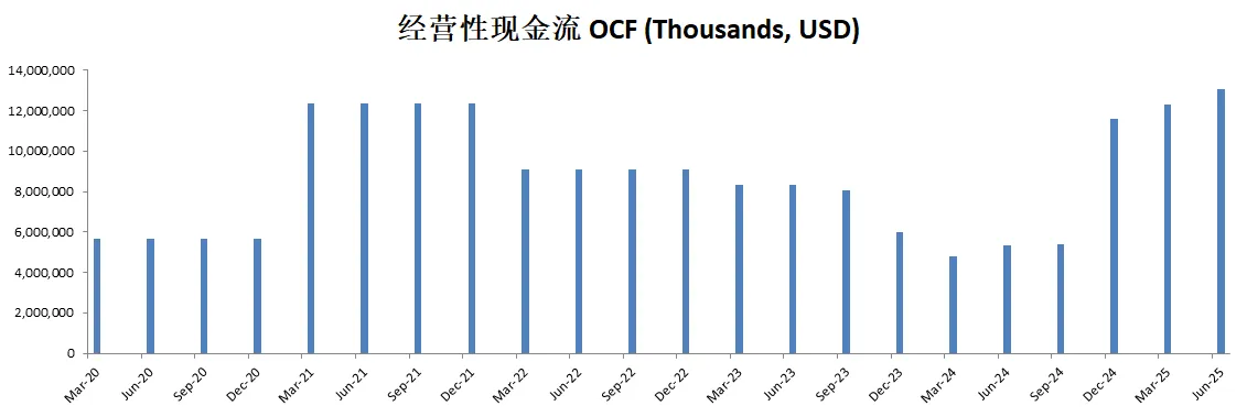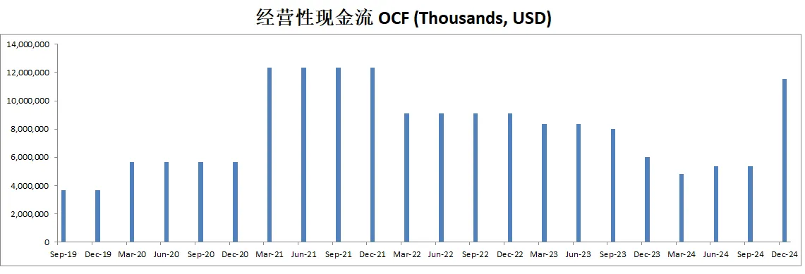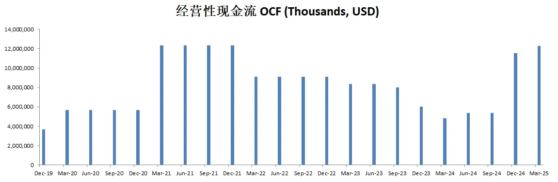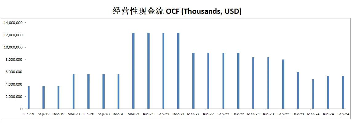 不善于创造现金流,8.92B EBIT,只能创造4.87B OCF,并且OCF和FCF 12个月数据有明显下滑