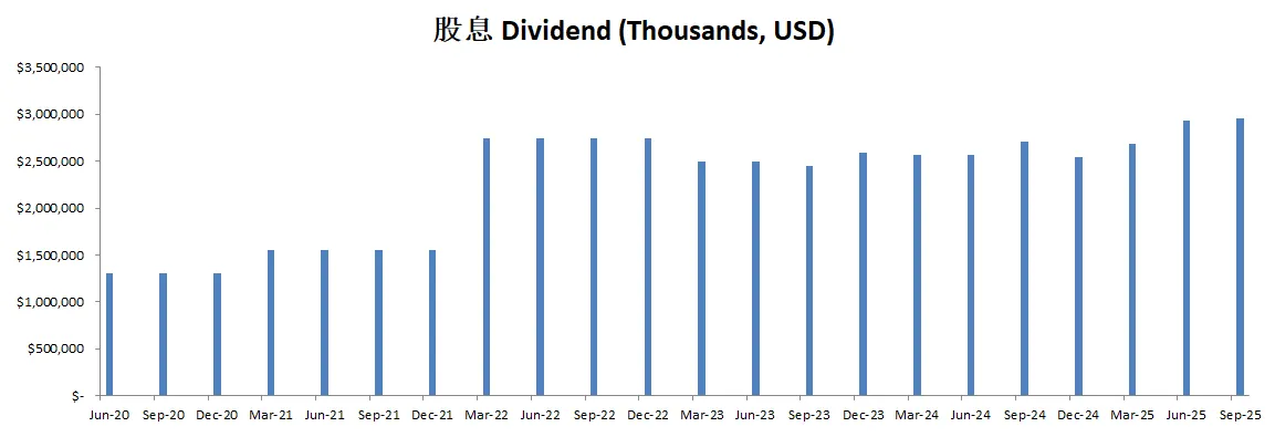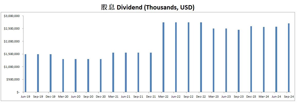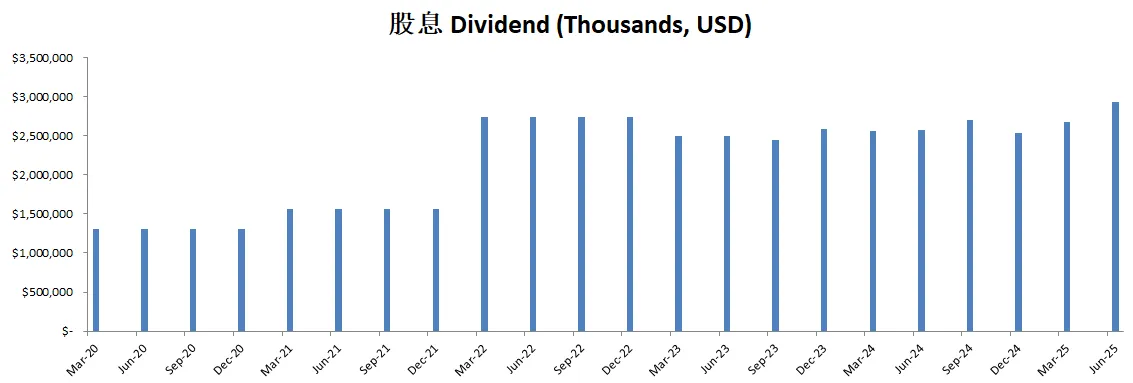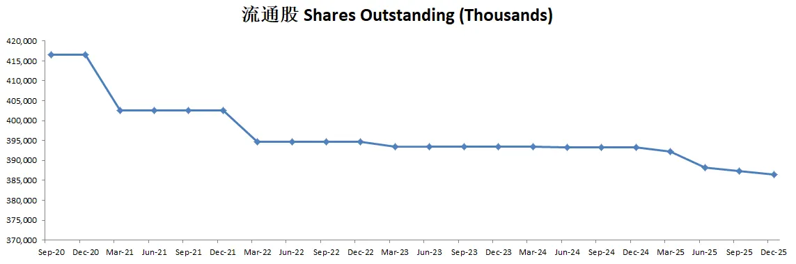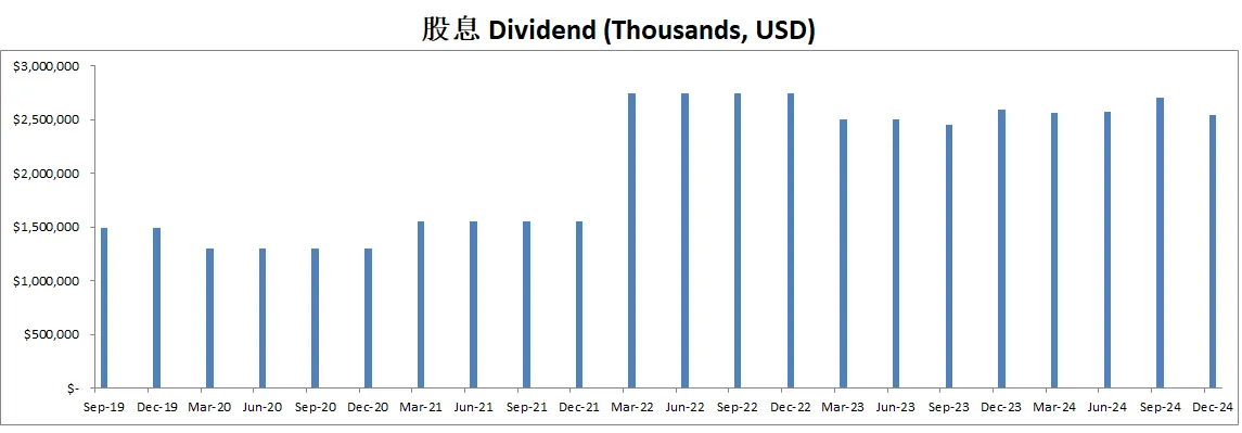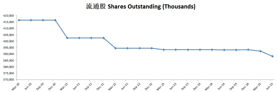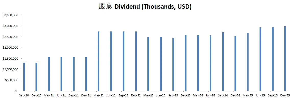 -公司不但股息稳定增长,而且这个季度回购力度大幅增加