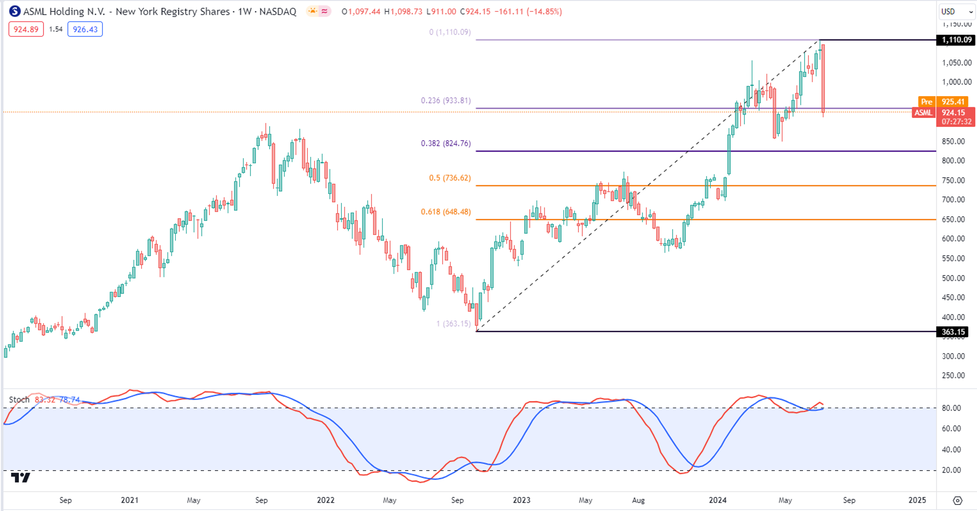 ASML Holdings ( $ASML )在过去的600天,已经涨了196.63%,差不多翻了3倍