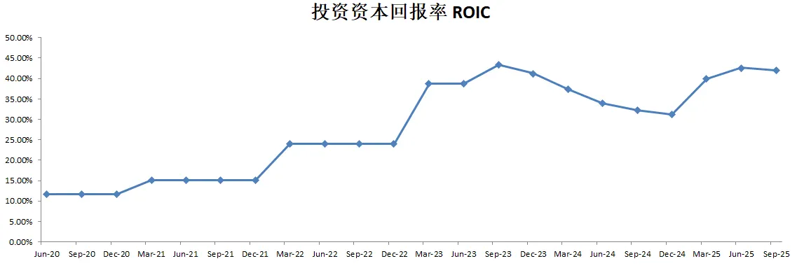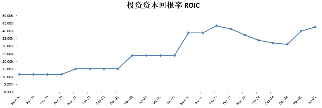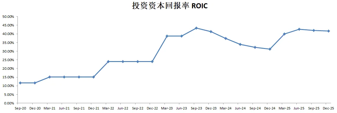 -ROIC继续增长,现在已经来到了42.60%,这个数据非常优异了