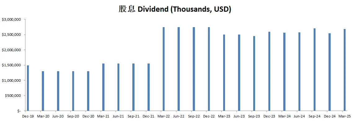 -公司股息稳定,且仍在进行一定程度上的股份回购