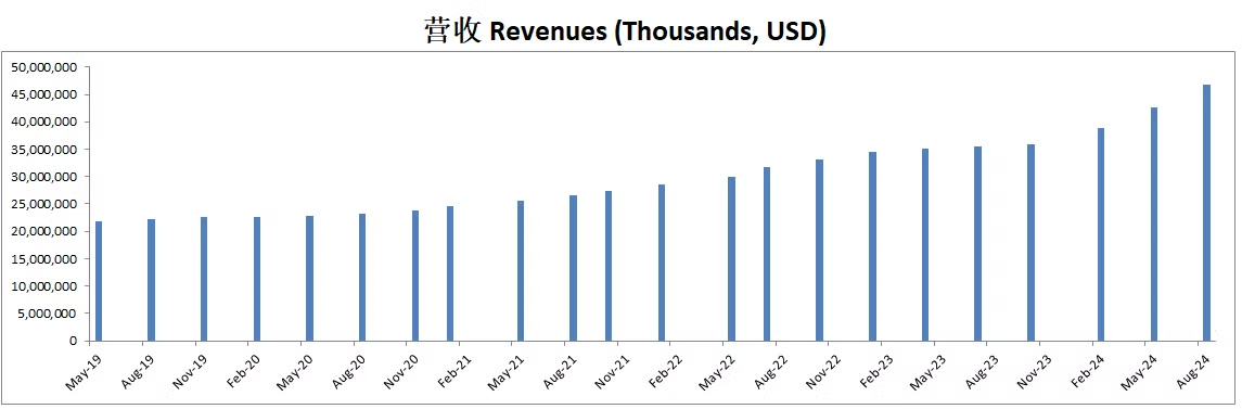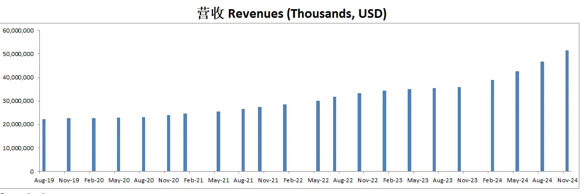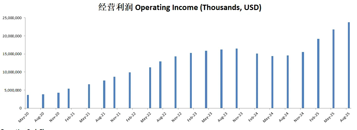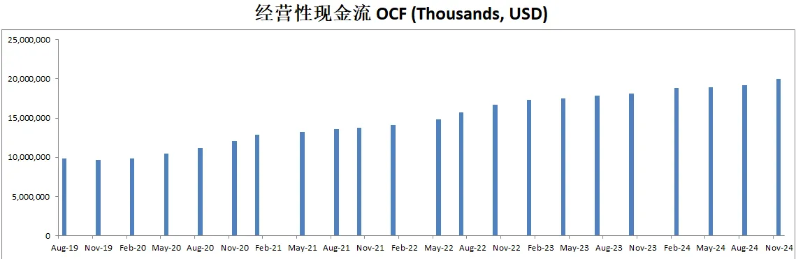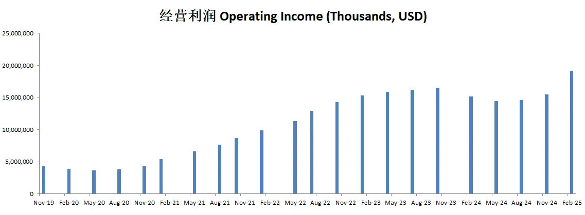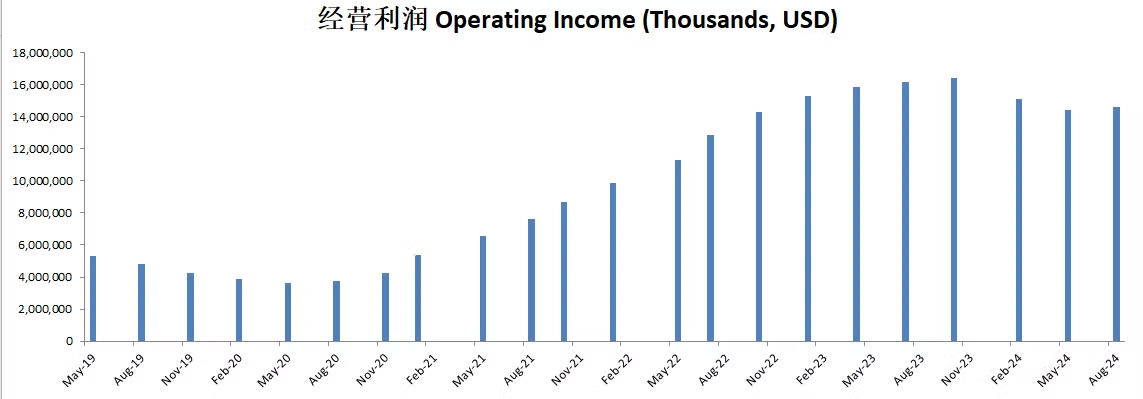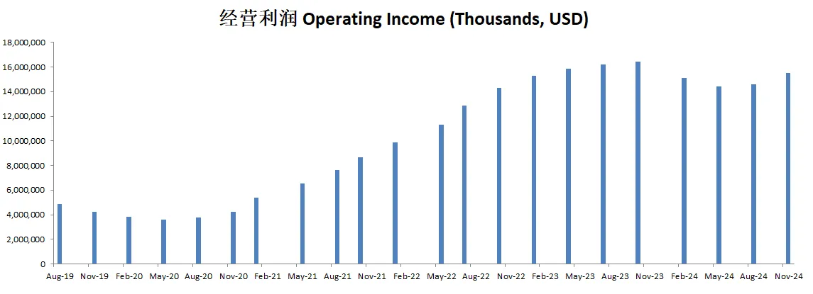 经营利润表现突出,最新来到15.14B,5年CAGR有24.06%