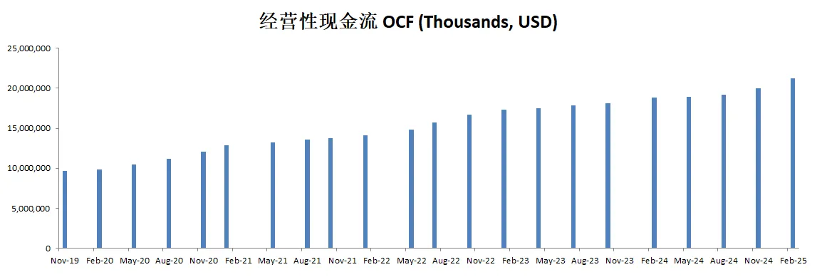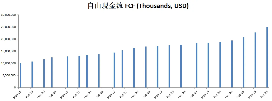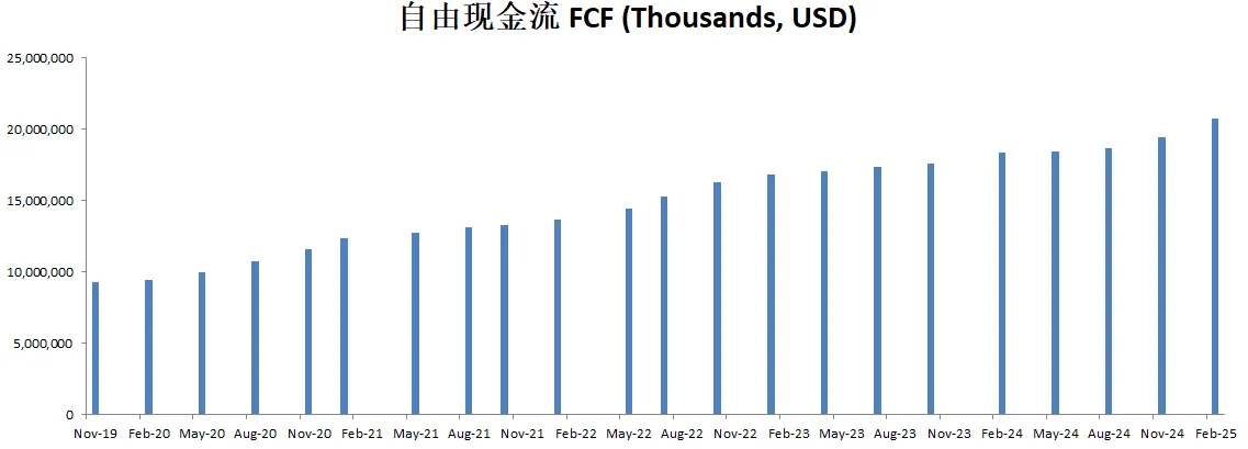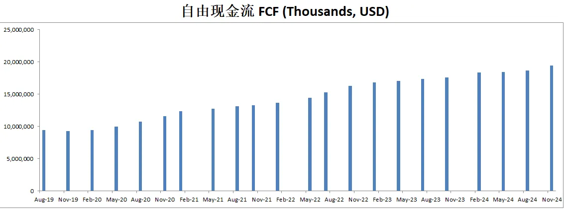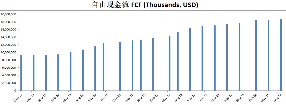 CAPEX投入很低,只有FCF的2.61%,公司似乎不需要大量的投入资本也能保持增长
