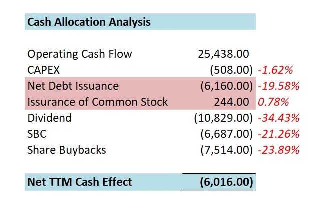 公司也花了不少钱进行股份回购,占FCF 68.15%