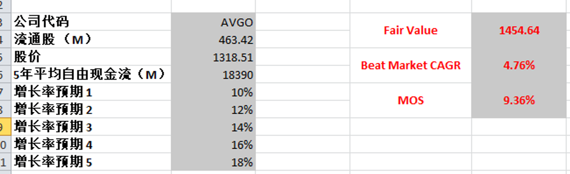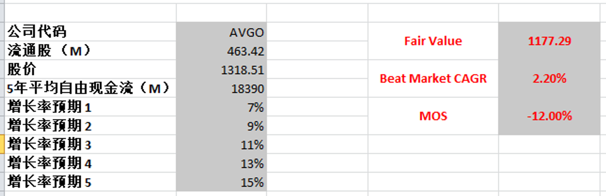 如果使用最新FCF,最高使用18%的话,合理价为1454.64,不过根据我的经验,这个增长率太乐观了