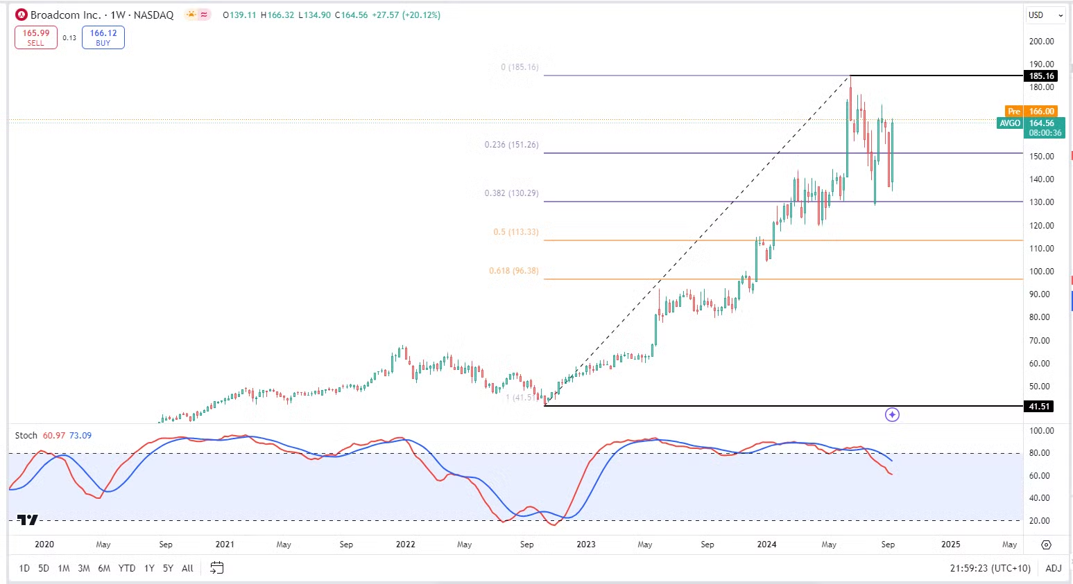 -股价似乎在Fibonacci 0.5线找到支撑