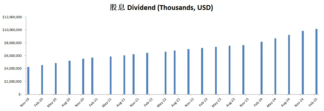 六、总结 整体而言,Broadcom 第一季度在半导体与软件两大业务中均表现亮眼,AI 相关硬件与网络产品需求强劲远超预期,而 VMware 订阅化转型与企业对私有云部署的兴趣上扬也让基础设施软件营收与利润率同步增长。公司预计将在未来持续加大对尖端制程、先进封装以及网络架构的投入,巩固其在 AI 与企业软件领域的领先地位,同时依托健康稳定的自由现金流与经营效率,为股东提供稳健的长期回报。