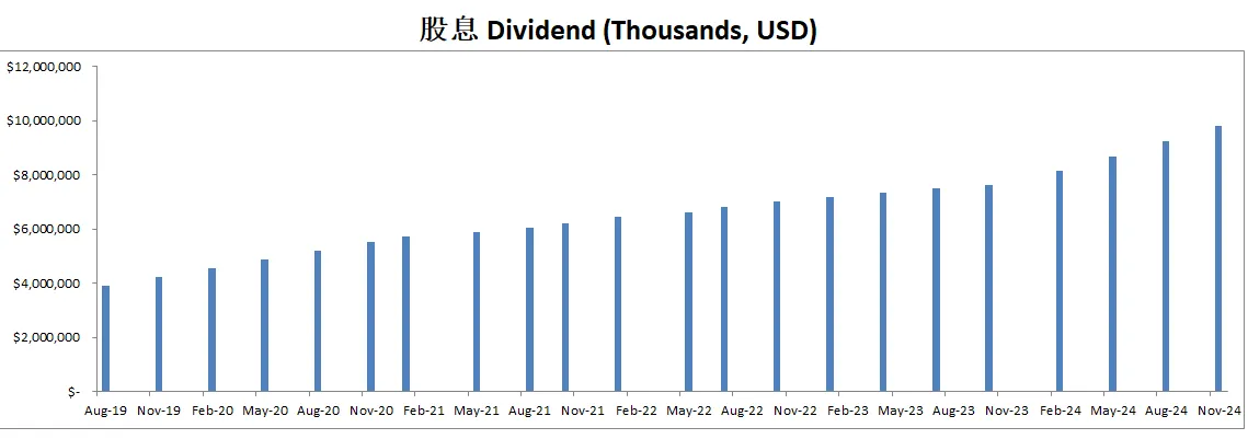 公司不但派发股息,还进行了股份回购,最新季度公司回购了目前为止最大一笔,价值8.29B的股份,目前一年下来公司要买回去价值14.33B的股份