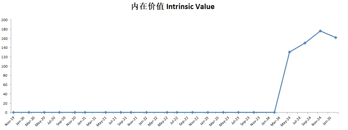 -基于目前最新季度公司有效现金流15.30B,假设CAGR为13.52%(5年公司现金流CAGR),算出来合理价为161.46。暂时公司股价虽然有大幅调整,不过似乎还是没有提供安全边际。