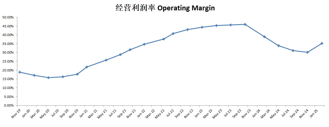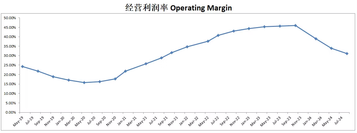 同时,最新公司R&D科研上投入也是开始加大力度,来到了2.31B,这是平时季度的2倍,大量经营开支的同时,最新单季度经营利润率也是受到了影响