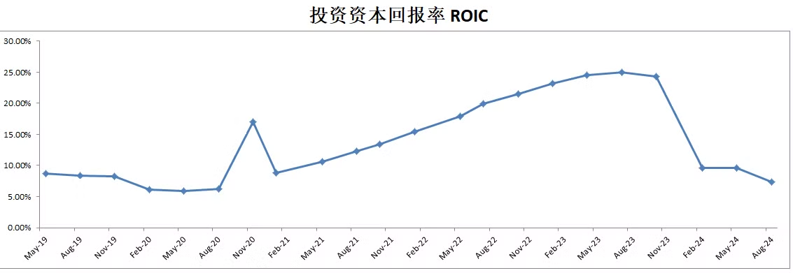 最新ROIC有9.72%,相较上个季度进一步缩水
