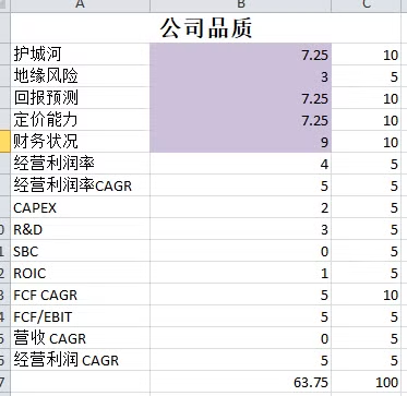 -公司品质不高,只有63.75分,其中R&D,CAPEX巨大,但是盈利能力增长缓慢。