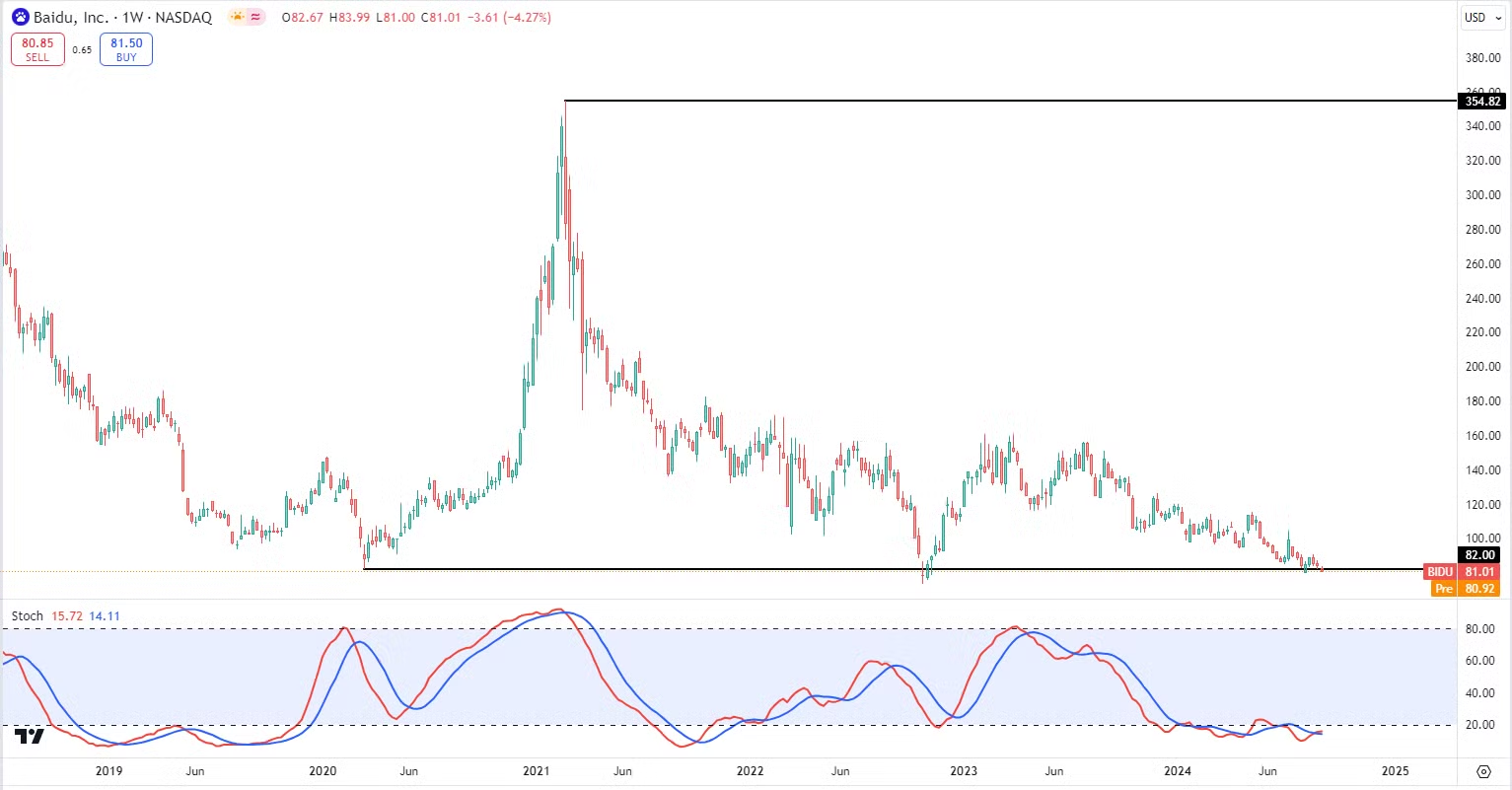 百度 $BIDU 股价现在又回到了已经的最低点。