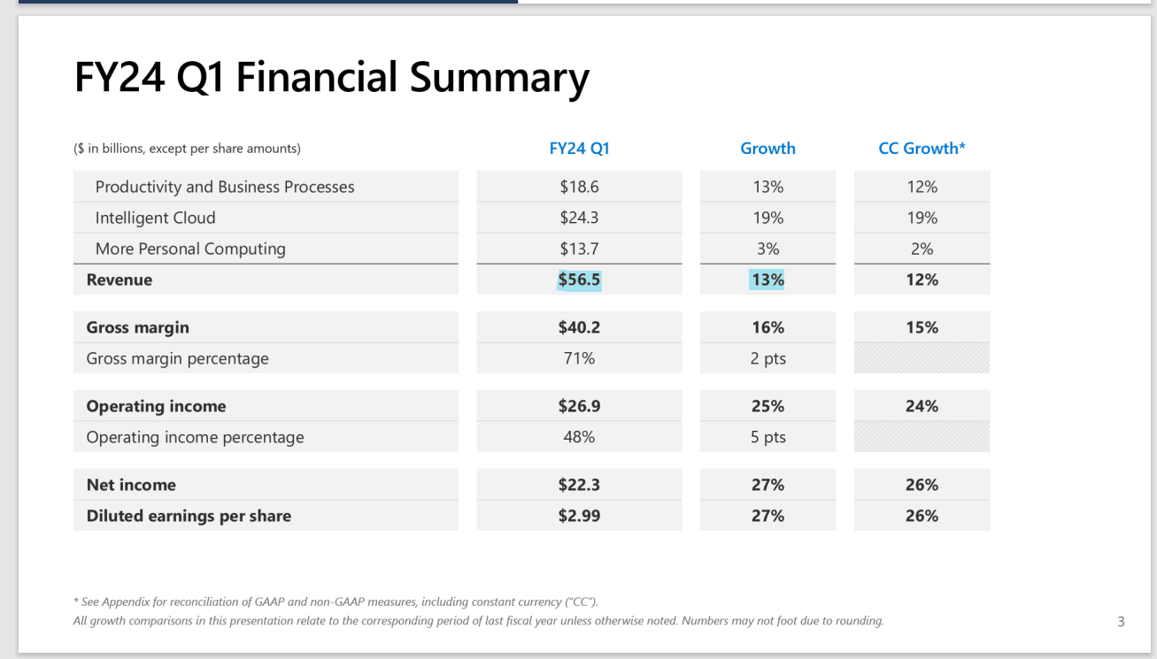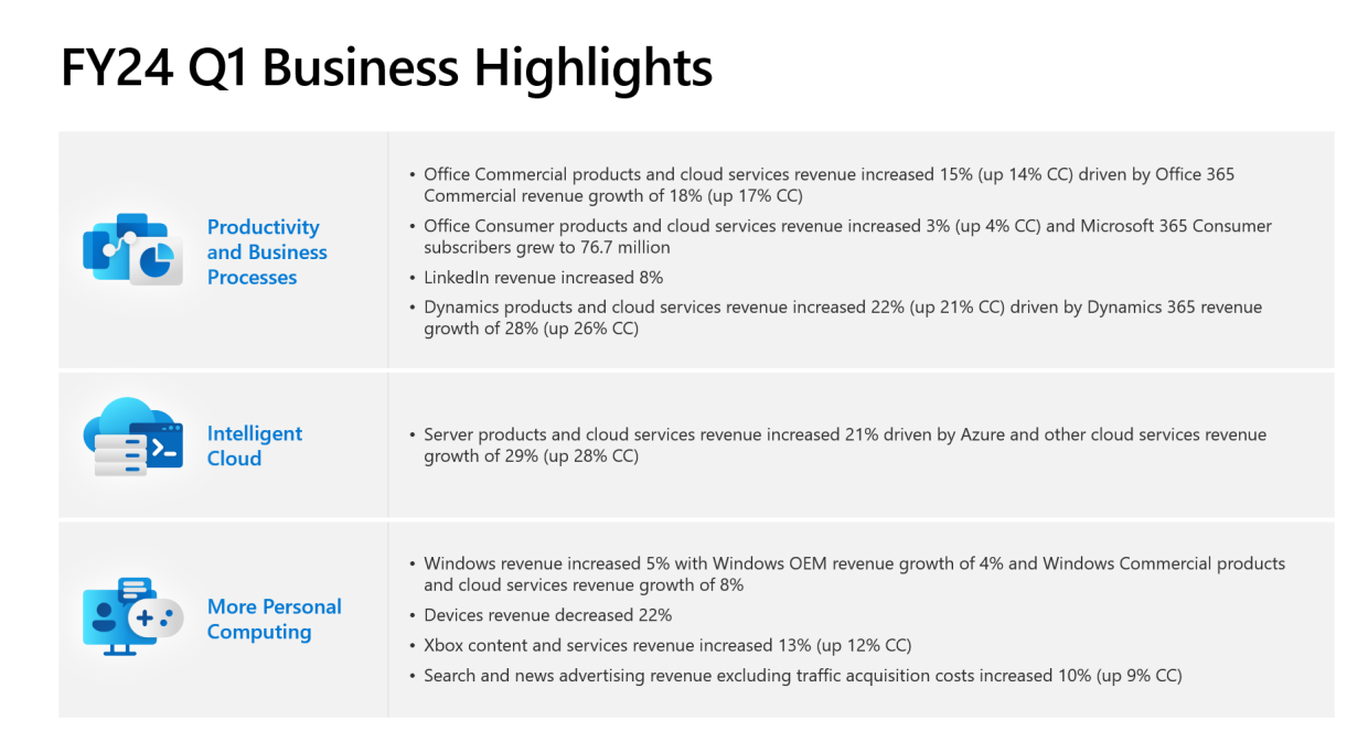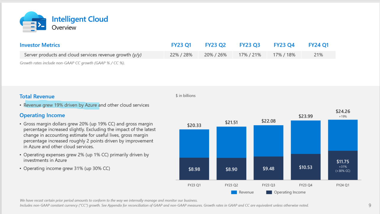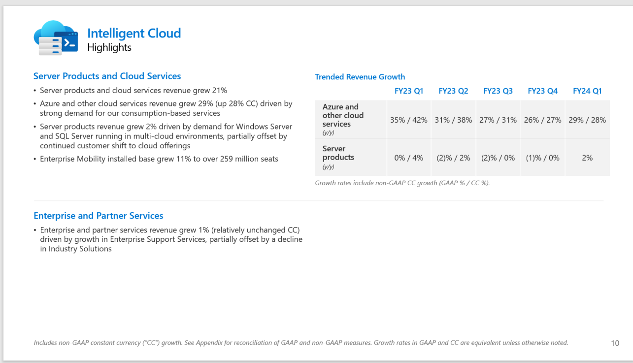 这个领域涉及到服务器产品和云服务的收入,增长了21%,这一增长主要是由Azure和其他云服务收入的强劲增长驱动的。