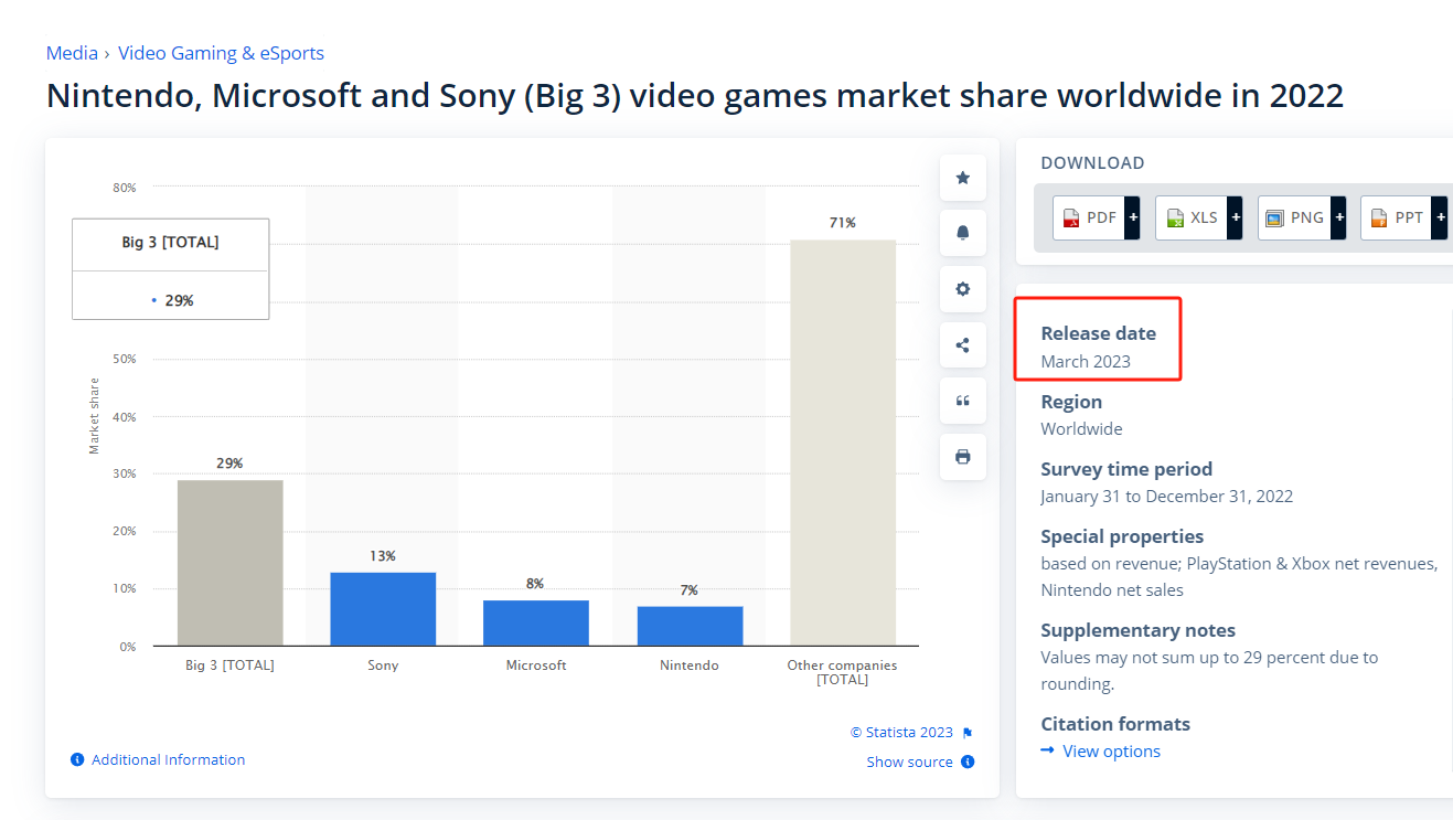其次我们来看看目前的游戏市场,我们看到statista最新3月份的时候的数据,所谓的big 3,任天堂,微软,以及索尼可以说是名副其实,3家加起来占总市场的29%。我自己对游戏就非常感兴趣,而微软旗下的游戏在游戏界可以说也是家喻户晓,比如著名的Halo系列,Minecraft,以及帝国时代系列,随便数出来都是大名鼎鼎,加上马上微软还要收购暴雪,那么Call of duty使命与召唤系列,魔兽世界,暗黑破坏神,星际争霸,等等都会加入到微软的游戏Portfolio当中。