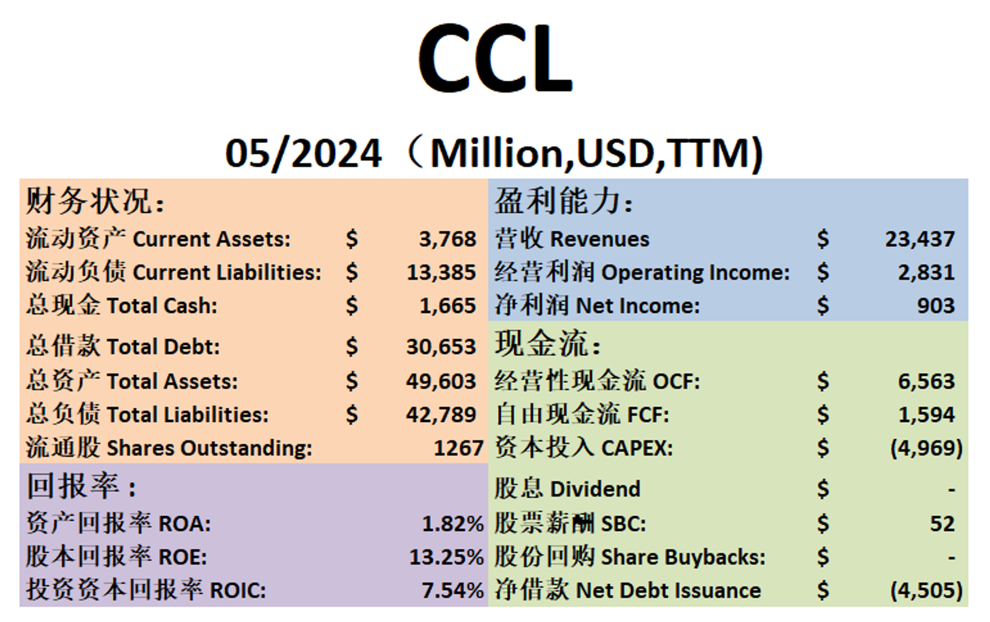 今天我们来分析下截至最新24年5月,CCL的表现如何