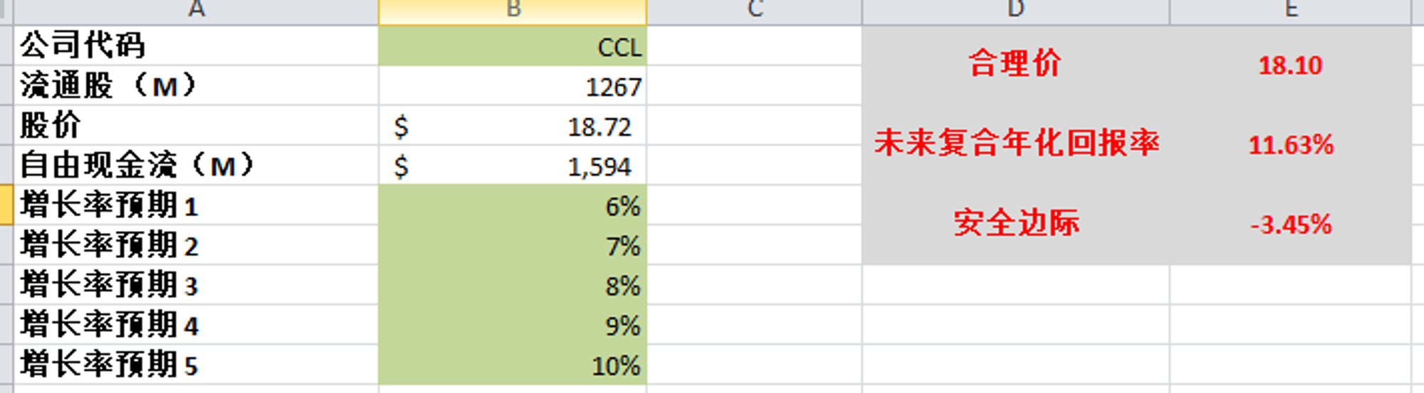 根据我的估值,目前市场给CCL的定价比较合理,目前股价不存在安全边际